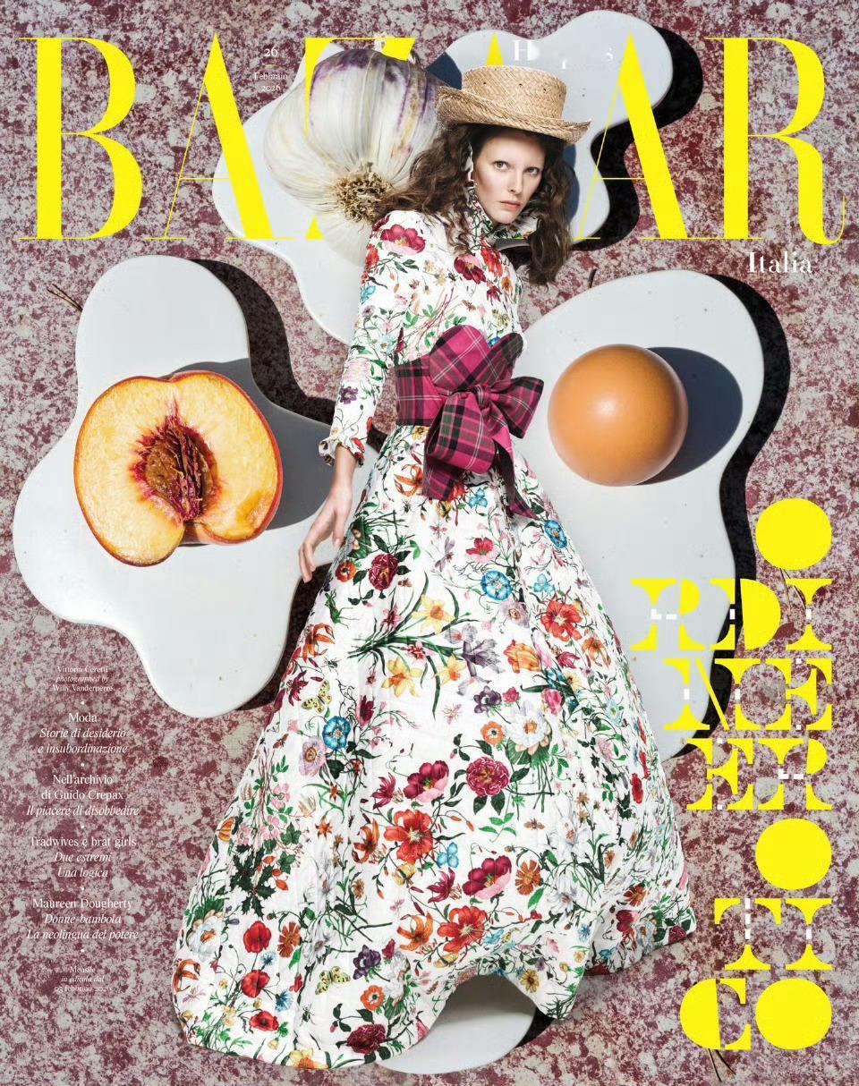 超模贺聪及Vittoria Ceretti 分别在《嘉人》、意大利BAZAAR封面演绎Gucci“La Famiglia”系列繁复花卉长裙,艳丽多姿的鲜花在白裙上盛放,正合适春天🌷