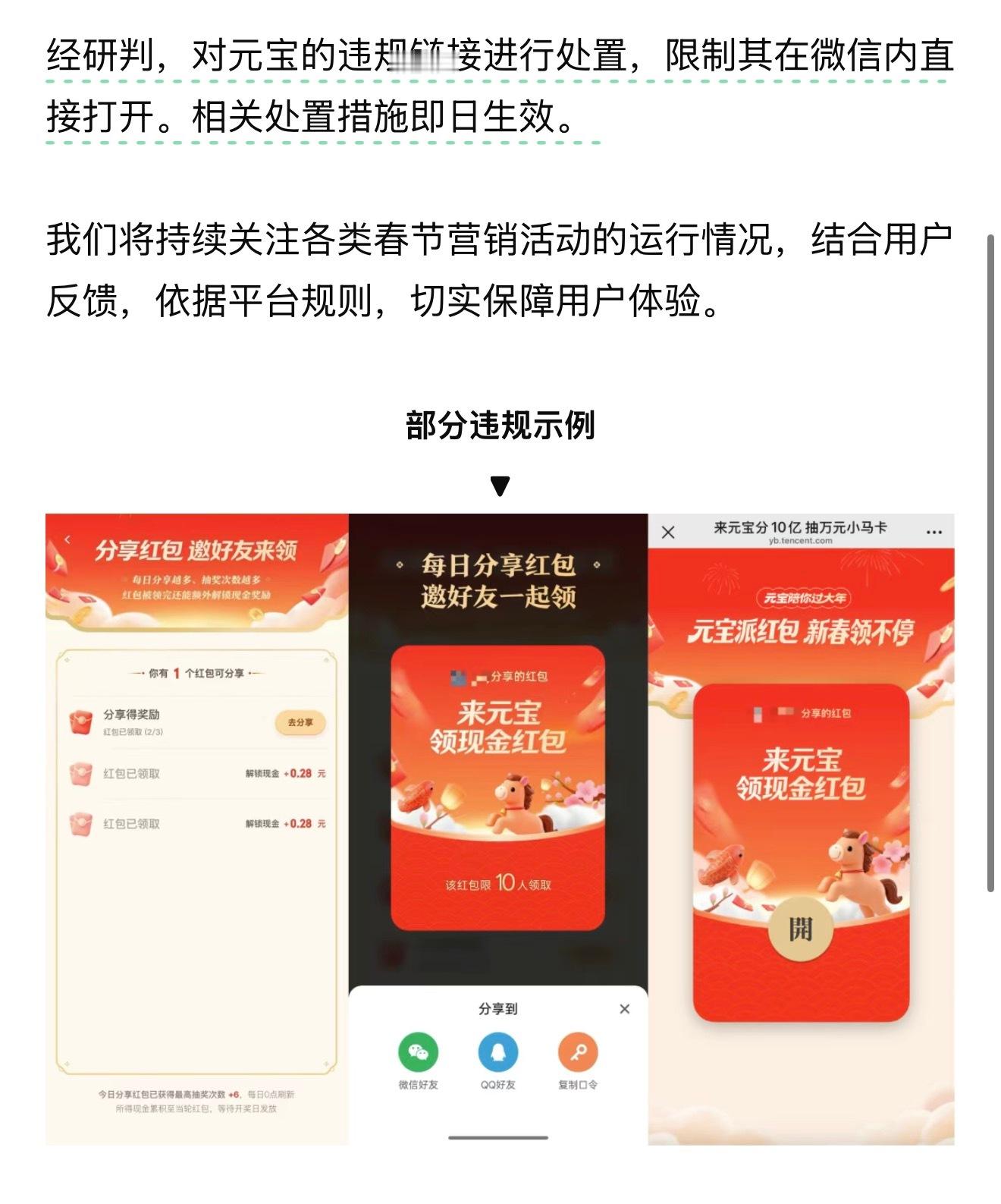 微信限制元宝链接在微信直接打开,这很微信