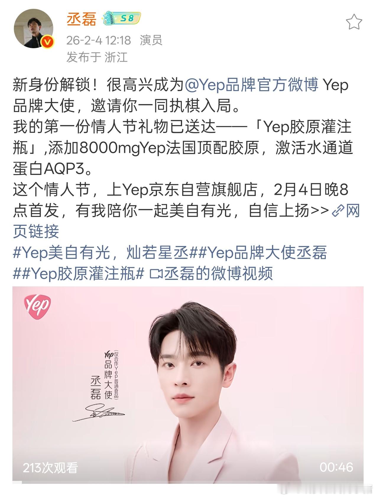 丞磊Yep品牌大使正式官宣,粉色西装造型