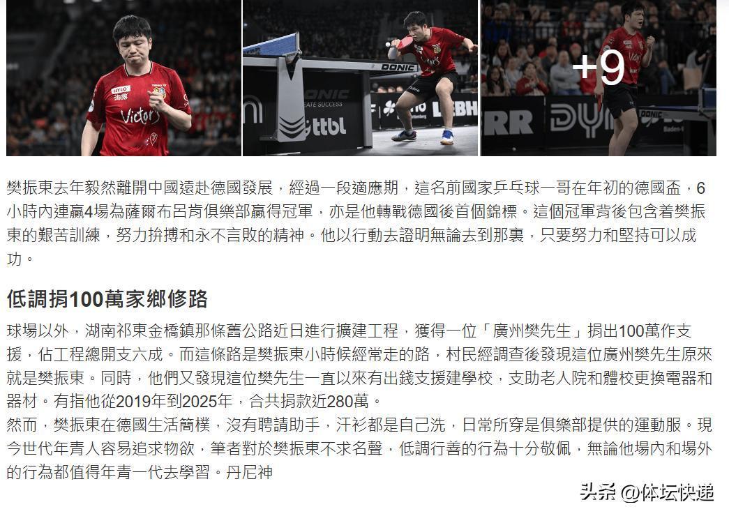 樊振东王楚钦直接入选世乒赛名单,更令人欣慰的是樊先生为家乡累计捐款280万元,而身处德国没有请助手,衣服是俱乐部的,自己洗,生活简单朴实,这样的樊先生,谁能不喜欢?