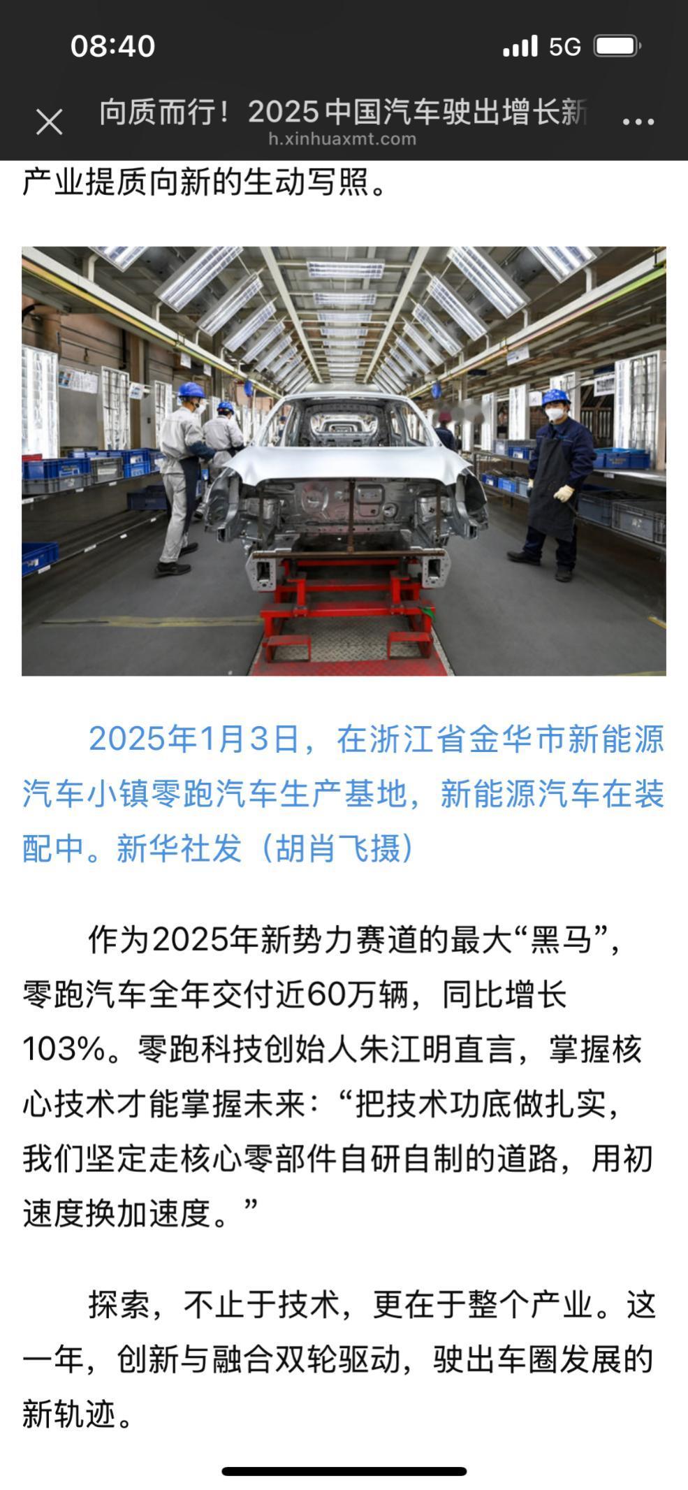 逆势也挡不住零跑高销量,零跑2026年加速向前! 要说进入2026年后汽车圈最大的话题是啥,毫无疑问就是购置税减半,对行业的影响可谓是秋风扫落叶,可就当各大车企公布1月份销量成绩之后,我发现零跑这个车企是真的强势,逆势上涨,1月交付32059台新车,同比大涨27%,延续了2025年销量的火爆。 零跑在25年交出了接近60万台的成绩,稳居新势力首位,并凭借着超6.7万台的出口量同样稳居新势力出口冠军,超额完成了任务,它还在25年的3-12月份连续10个月坐稳新势力榜首。人民日报和新华社两大央媒都高度肯定了零跑的表现,新华社撰文称零跑是2025年新势力赛道的最大“黑马”。 人民日报则撰文讲述了中国新势力品牌由“蔚小理”到“零鸿米”转变的过程,并讲述了零跑背后站着的是信息与通信技术的领军企业,相比互联网造车拥有了产业融合发展的优势。 当然了,2026年的零跑更值得看,因为A系列和D系列即将上市,A10做到了科技平权,将激光雷达打到了10万内,而D19和D99更是凭借着30万级的价格就带来了百万级体验,这几款新品上市之后肯定会大幅提升零跑的销量,将是零跑26年销量破百万的重要推手!