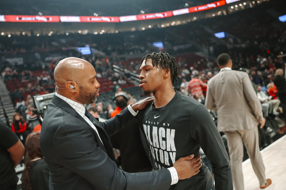 波特兰开拓者官方账号今日发布消息,球队新秀后卫卡莱布·洛夫在赛前与NBA传奇球星文斯·卡特和卡梅隆·安东尼进行了深入交流。据悉,这次会面发生在2026年NBA全明星新秀赛前夕,卡特和安东尼作为本届新秀赛的荣誉教练,正在为各自带队的新秀球员提供指导。根据NBA官方公布的分组名单,文斯·卡特将执教包括VJ·埃奇库姆、德里克·奎因等新秀的卡特队,而卡梅隆·安东尼则将带领拥有状元库珀·弗拉格、榜眼斯蒂芬·卡斯尔以及开拓者队友多诺万·克林根的安东尼队。虽然洛夫本人并未入选本届新秀赛名单,但作为开拓者重点培养的新秀,他获得了与传奇球星面对面学习的宝贵机会。值得一提的是,洛夫在2026年1月的表现相当亮眼,单月三分球命中数位列开拓者队史新秀第二位,仅次于达米安·利拉德。这位2024年落选秀本赛季在开拓者获得了稳定的出场时间,场均贡献6分2篮板1助攻,三分球命中率保持在35%左右,展现出不俗的外线投射潜力。此次与两位名人堂成员的交流,无疑将为洛夫的职业生涯发展提供重要指导。卡特和安东尼作为NBA历史上最杰出的得分手之一,他们的经验对于年轻球员的成长具有不可估量的价值。