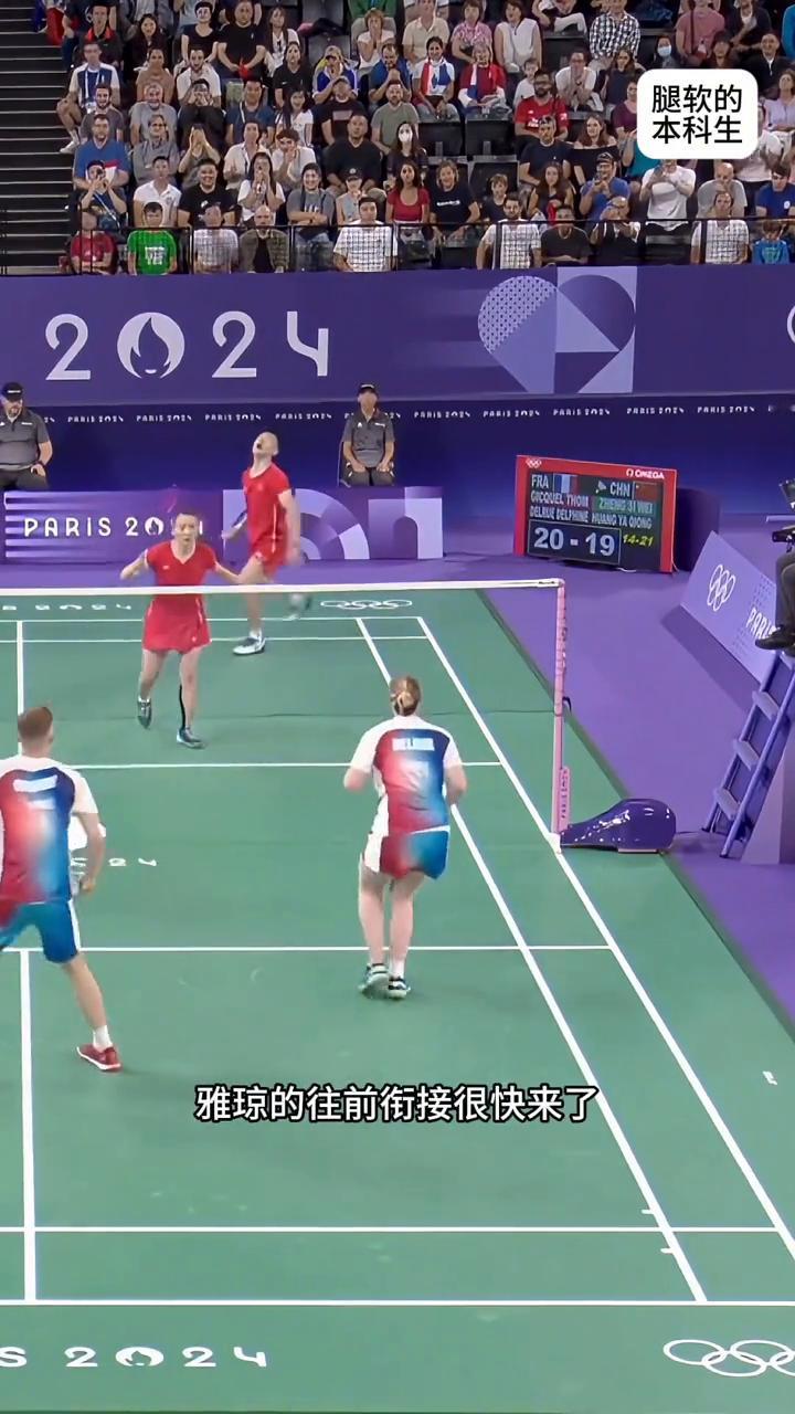 腿软的本科生这一回合打了多少拍? 来看一下郑思维、黄雅琼精彩的超长多拍。对阵的是法国组合汤姆和德尔菲娜,这对组合最高世界排名第五,双方有着巨大的实力差距。雅思已经是前无古人的混双历史第一,总冠军数43个,只有张军和高绫在奥运冠军上比他们多一块。 金牌来了,法国汤姆猫猛砸斜线,小娜网前补刀被郑思维格挡回去,思维站在中线附近控两人的头顶位,汤姆杀直线,雅琼跟上抢搓,汤姆分大对角连贯动作变形抽压中路。目前法国组合处于局点的优势,比赛过程十分紧张,雅琼的往前衔接很快来了。 温州妖王怒砸法兰西,郑思维的杀球开关打开就一发不可收拾,思维轻放一个,雅琼饿狼扑食,被汤姆猫反勾大斜线,思维的脚步很快化解了险情。刚说完又来一个,汤姆这个杀球太惊险了,雅琼轮转到后场杀球,思维快速补位,把法国选手限制在头顶区,对方个子比较高就是要打他们的转身。 来了汤姆发力砸中路,小娜抽压被亚琼吐回去,思维顶后场很到位,来了集你们的腰子,一锤顶一,不愧是暴力炮台,杀球时速比重炮天花板傅海峰还快。