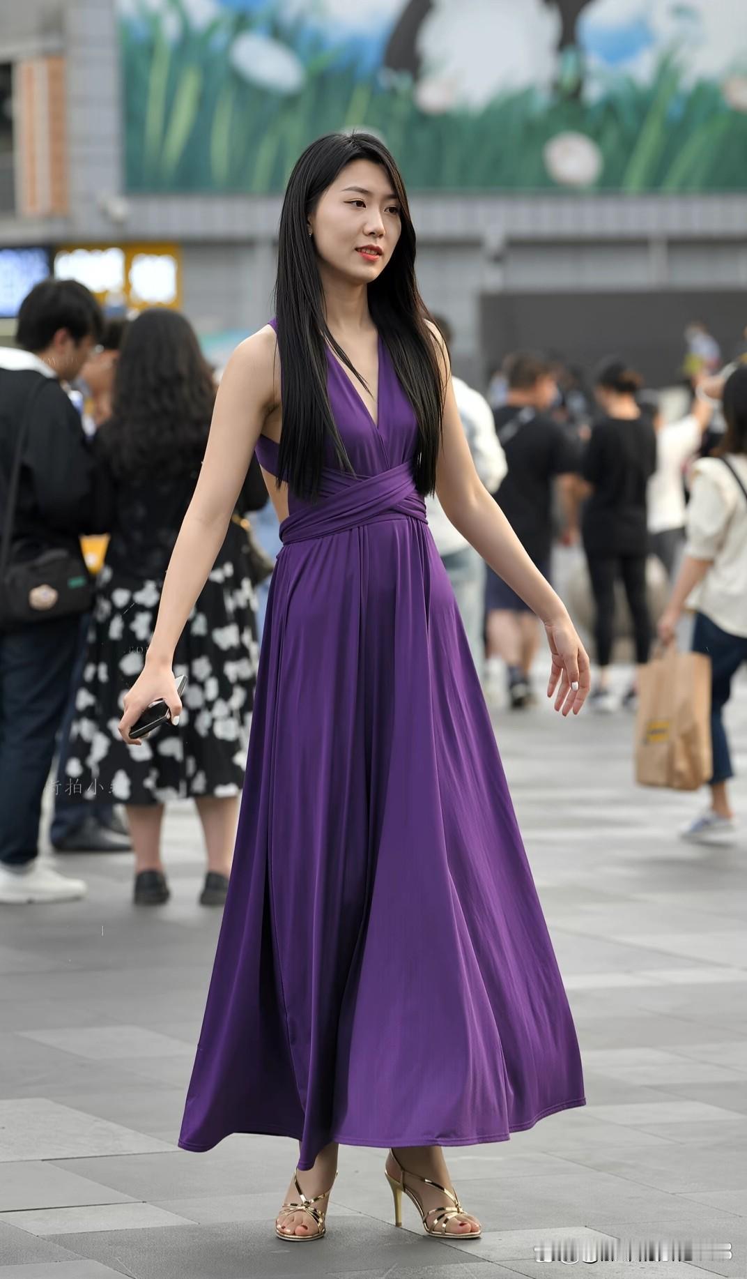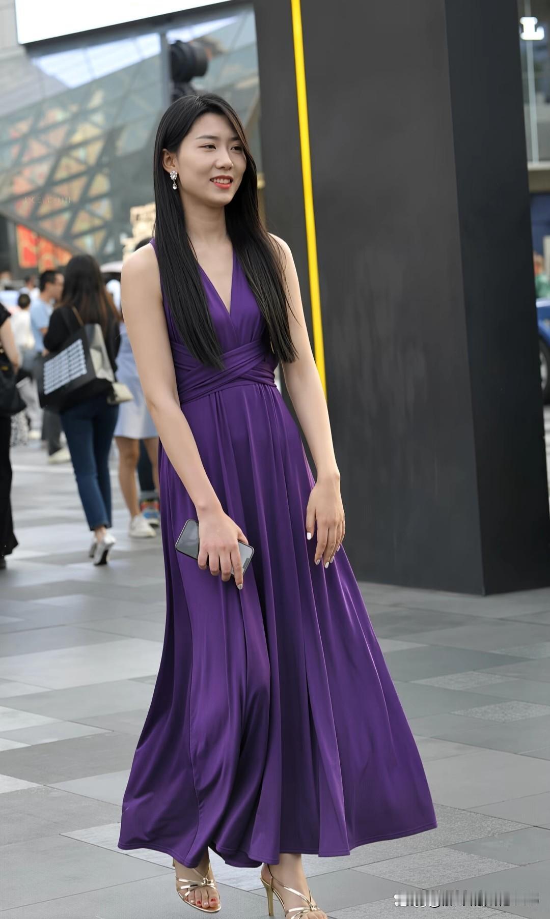 优雅紫色连衣裙,简直是都市街头的时尚利器!紫色本就自带神秘浪漫氛围,穿在身上瞬间提升气质。 想象一下,走在繁华的都市街头,一条紫色连衣裙随风飘动,那画面别提多吸睛了。它可以是简约的款式,修身的剪裁凸显身材曲线,再搭配一双精致的高跟鞋,时尚感直接拉满;也可以是带有一些设计感的,比如泡泡袖、蝴蝶结等元素,增添甜美俏皮。不管哪种风格,都能让你在人群中脱颖而出,成为街头一道亮丽的风景线。