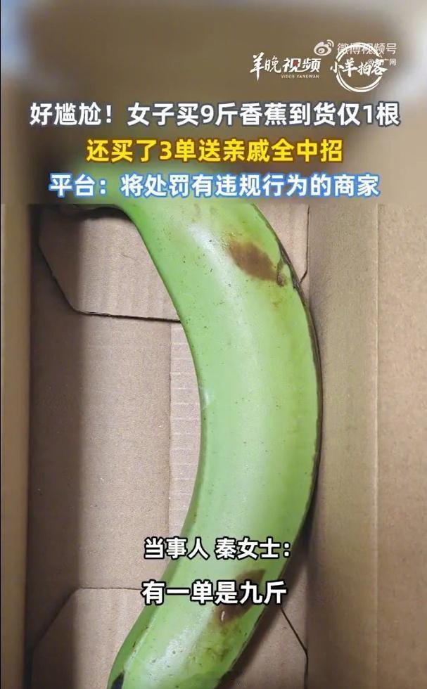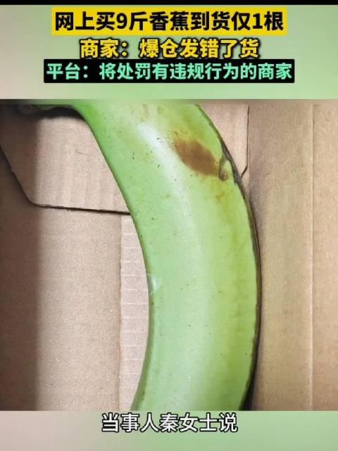 离谱!网购9斤香蕉,到货仅1根?商家甩锅爆仓,平台回应了 北京女子网购翻车现场,看完直呼离谱到家! 女子在电商平台下单9斤香蕉,满心盼着实现“香蕉自由”,可快递拆开的瞬间,直接懵了。 偌大的快递箱里,没有满满一箱果香,只剩孤零零1根香蕉,孤零零躺着格外刺眼。 联系商家质问,对方轻飘飘甩来一句:仓库爆仓,忙中出错发错了。 这话谁能信?要知道,按市场标准,9斤香蕉足足有30-45根,1根还不到合理量的4%! 商家虽全额退款,却绝口不提额外补偿,女子质疑:这不是失误,是虚假发货薅羊毛! 事件发酵后,平台终于回应:将对涉事商家严肃处罚,绝不姑息。 看似一件小事,却戳破生鲜电商的漏洞——计量乱、履约差、监管松,别让消费者的信任,毁在一次次“离谱失误”里!
