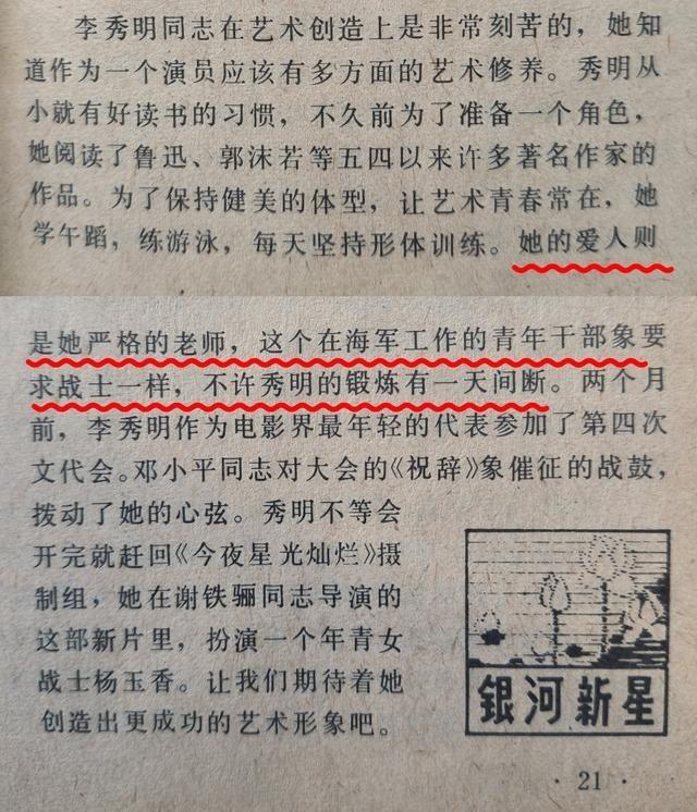1980年,媒体上曾提到过女演员李秀明的第一任爱人,“为了保持健美的体型,她(李秀明)学舞蹈、练游泳,经常坚持形体训练,她的爱人则是她严格的老师,这个在海军工作的青年干部象要求战士一样,不许秀明的锻炼有一天间断”,此时李秀明年仅26岁,正在拍摄《 今夜星光灿烂 》。八十年代的女演员结婚都挺早,但后来不知为啥离婚了,也不知啥时候离的婚。如 宋晓英 一样,媒体上都没见过李秀明和宋晓英的第一任老公,也没谁见过她们首任先生的照片。 李秀明1954年12月9日出生在天津,祖籍河北大城县。1972年初中毕业进入天津人民艺术剧院学员班学习表演,1973年结业后留在剧院担任演员。她从小接触地方戏曲氛围,积累了表演基础。1975年主演个人第一部电影《春苗》,扮演妇女队长田春苗,这个角色让她开始获得关注。进入影坛初期,她专注于塑造朴实形象,逐步适应镜头前的表现方式。1976年调入北京电影制片厂,正式成为专业电影演员,继续参与多部作品拍摄。 调入北影后,李秀明参与《年青的一代》拍摄,饰演林岚,角色涉及支援农业相关内容。她还出演《甜蜜的事业》,扮演唐招弟,影片反映农村生活场景。1980年她在《今夜星光灿烂》中饰演杨玉香,此时26岁。媒体报道显示她坚持学舞蹈、练游泳和形体训练,第一任爱人作为海军青年干部负责指导,像管理部队人员一样要求每日锻炼不间断。这种严格安排与拍摄工作结合,帮助维持体型状态。八十年代女演员早婚现象常见,李秀明也在这一时期结婚。 李秀明第一任丈夫是海军军官,两人约27岁时结婚,育有一女儿。婚姻维持几年后因性格差异和生活观念不同解除。丈夫长期在部队工作,导致聚少离多,双方对事业与家庭安排看法不一致。离婚后女儿跟随李秀明生活。第一任丈夫相关信息极少曝光,没有公开照片,媒体也未详细报道。类似情况出现在宋晓英身上,第一任丈夫同样鲜为人知。离婚具体时间和细节公众了解有限。 1981年李秀明主演《许茂和他的女儿们》,饰演许秀云。该片根据同名小说改编,讲述农村家庭故事,她塑造的角色获得认可。凭借此作获得第二届中国电影金鸡奖最佳女主角和第五届大众电影百花奖最佳女主角,成为北影厂与刘晓庆、张金玲并称的三朵金花之一。表演注重自然质朴,眼睛表情丰富,符合时代观众审美。获奖后知名度进一步提升,参与更多项目。 1982年主演《孔雀公主》,饰演孔雀公主,影片神话爱情题材,在全国产生广泛影响,角色形象清丽深入人心。之后出演《秋瑾》,扮演秋瑾,展现历史人物气质。1986年参演《山林中头一个女人》和《你的微笑》,1988年到1989年在《红楼梦》中饰演贾元春。1993年《燃烧的雪花》成为最后一部电影作品。此后她逐步减少演艺活动,转向其他领域发展。