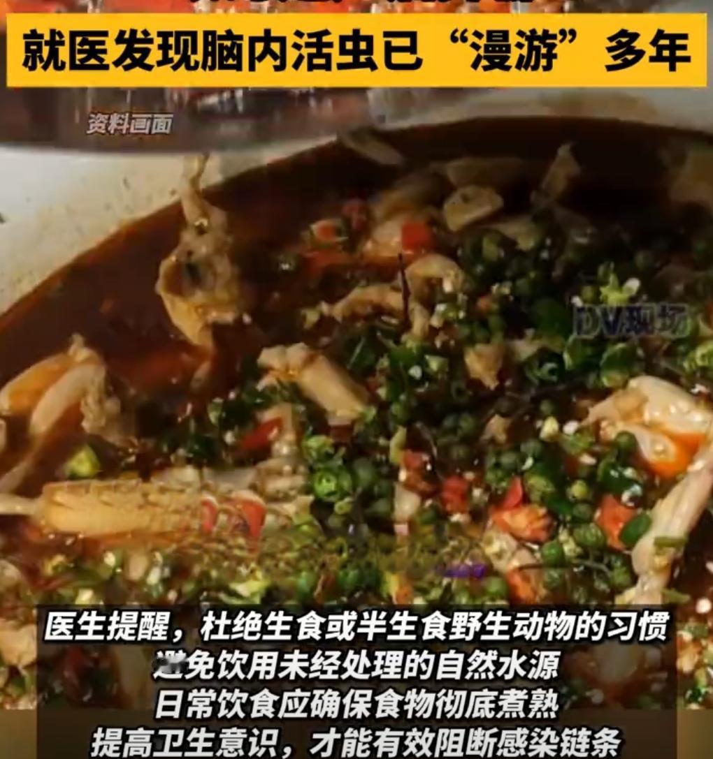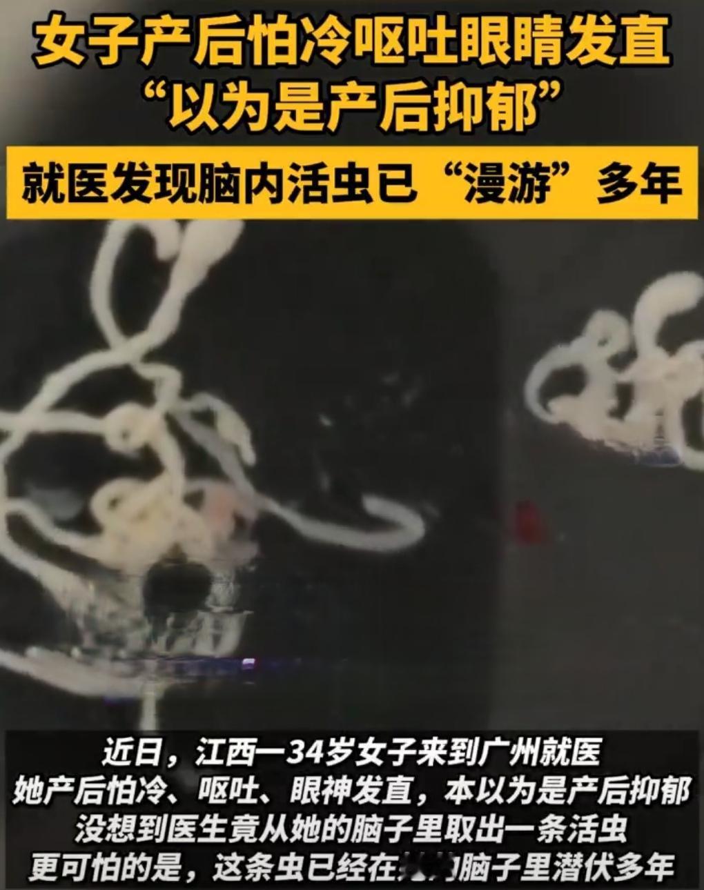 近日,广州一位新手妈妈阿梅(化名)经历了惊魂一幕。产后不久,她突然出现怕冷、呕吐、眼神发直等症状,被紧急送往广东三九脑科医院。 神经外十科欧阳辉教授接诊后,通过详细检查,确诊为曼氏裂头蚴感染,需立即手术。 令人震惊的是,医生在阿梅颅内完整取出了一条仍在蠕动的活虫,形状如面条。术后,阿梅恢复良好。 据家属透露,她平时特别爱吃蛙肉、螺肉等食物,且家里厨房的生熟砧板经常混用。医生推测,感染很可能与食用了未彻底煮熟的蛙肉有关。 寄生虫是怎样“爬”进大脑的? 曼氏裂头蚴常寄生在蛙、蛇等动物体内。如果吃了未煮熟的感染肉类,幼虫可穿过人体肠壁进入血液循环,随血流到达脑部、眼部等器官,存活数年甚至十几年。阿梅家的“生熟砧板不分”更是危险操作——生肉上的虫卵通过砧板沾到熟食上,直接“抄近路”进入人体。 生熟分开不是小事,是保命事! 很多人觉得生熟分开太麻烦,一个砧板切完肉冲一冲就切水果。但寄生虫卵和细菌可不是水一冲就能掉的。尤其是家里有孕妇、孩子、老人的,免疫力较低,更易中招。 高温是寄生虫的“死穴” 曼氏裂头蚴在56℃高温下煮5分钟就会死亡,沸水中更是活不过2分钟。所以关键就两点:一是所有肉类彻底煮熟,不吃半生不熟的蛙、螺、蛇、鱼生等;二是厨房严格分区,生熟砧板、刀具、容器分开使用,用完彻底清洗消毒。 阿梅的经历给我们敲响了警钟。美食固然诱人,但健康永远是第一位的。 千万别为了贪图一口“鲜嫩”,让寄生虫有可乘之机。记住,煮熟煮透、生熟分开,这八个字不仅能防寄生虫,还能预防多种食源性疾病。管住嘴,管好厨具,就是对自己和家人最好的保护!广州心理疾病