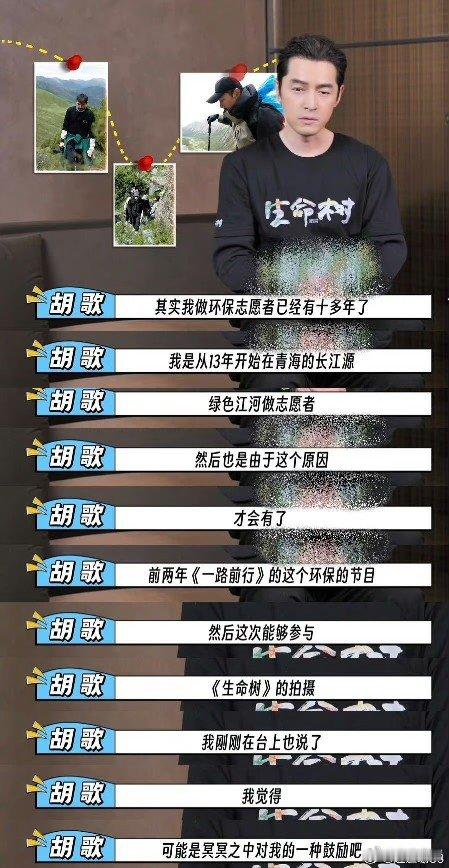 胡歌把新戏当作对自己环保的鼓励 胡歌把新戏视作对自己环保理念的独特鼓励,在其中演绎心中的环保英雄。这特别的“鼓励”,让他能尽情展现对环保的热情,超期待他新戏中的精彩表现~😎电视剧生命树