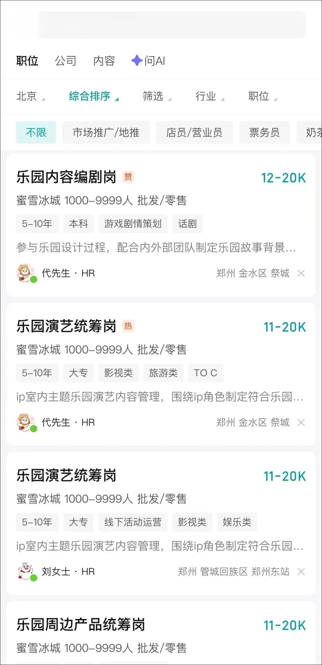 近日,在BOSS直聘上,蜜雪冰城上线了一批与“乐园项目”相关的招聘岗位,消息一出,迅速引发网友热议。