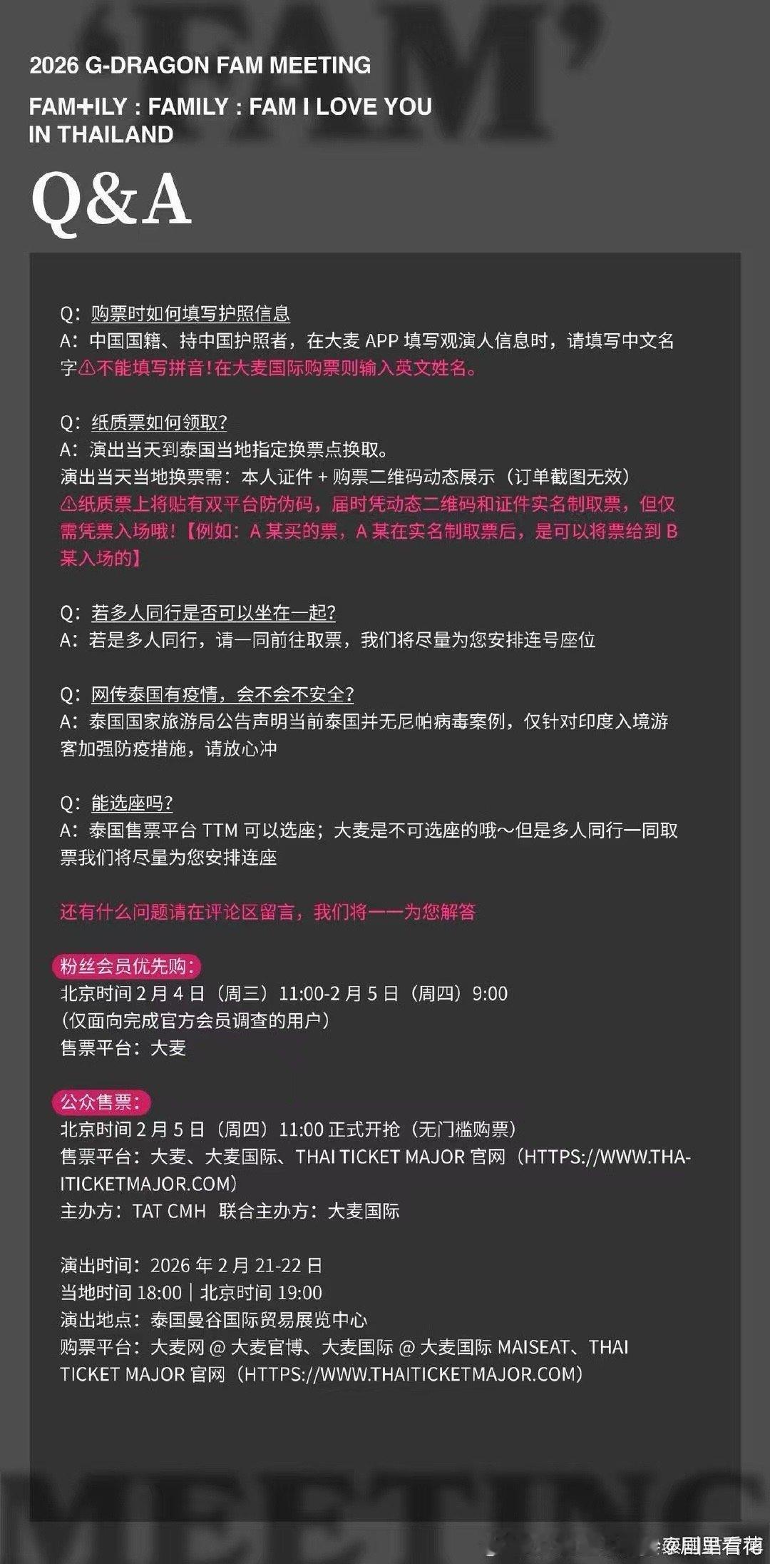 离了权志龙谁还这么宠我 曼谷见面会提前抢票太暖心!连座安排让朋友同行,购票Q&A详细,手速慢也能盼到见面,这份宠粉没谁了~