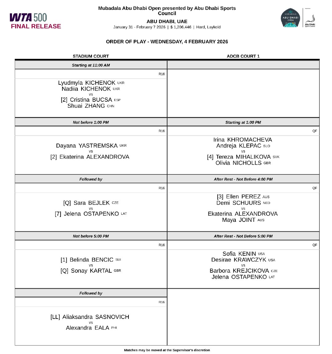 本西奇开启卫冕之旅,亚历山德洛娃、奥斯塔彭科、伊埃拉亮相,张帅出战双打,中心场比赛将在北京时间15:00开打。