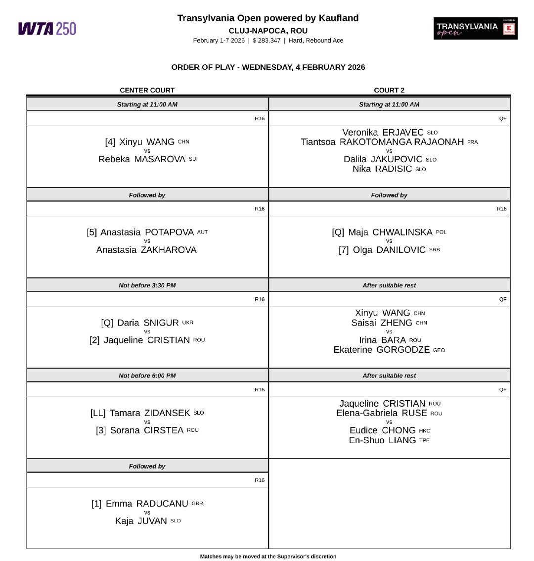 王欣瑜对阵马萨洛娃,拉杜卡努、波塔波娃、克里斯蒂安、达尼洛维奇等球员亮相,比赛将在北京时间17:00开打。