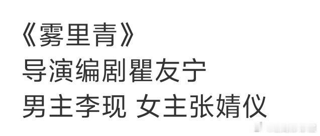 《雾里青》男主李现 女主张婧仪这配置也挺好,反正都是很有演技的小花