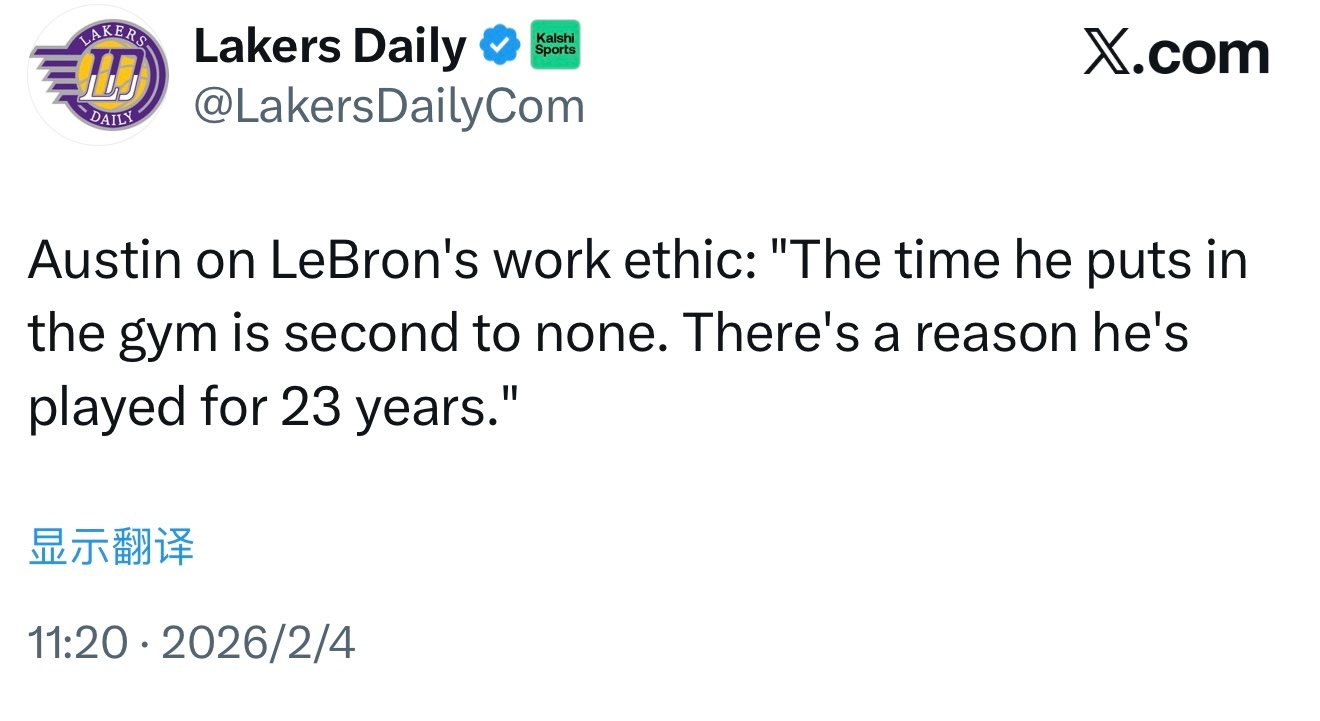 里夫斯谈到勒布朗的职业精神时说:“他在健身房投入的时间无人能及,他能打23年球是有原因的。”
