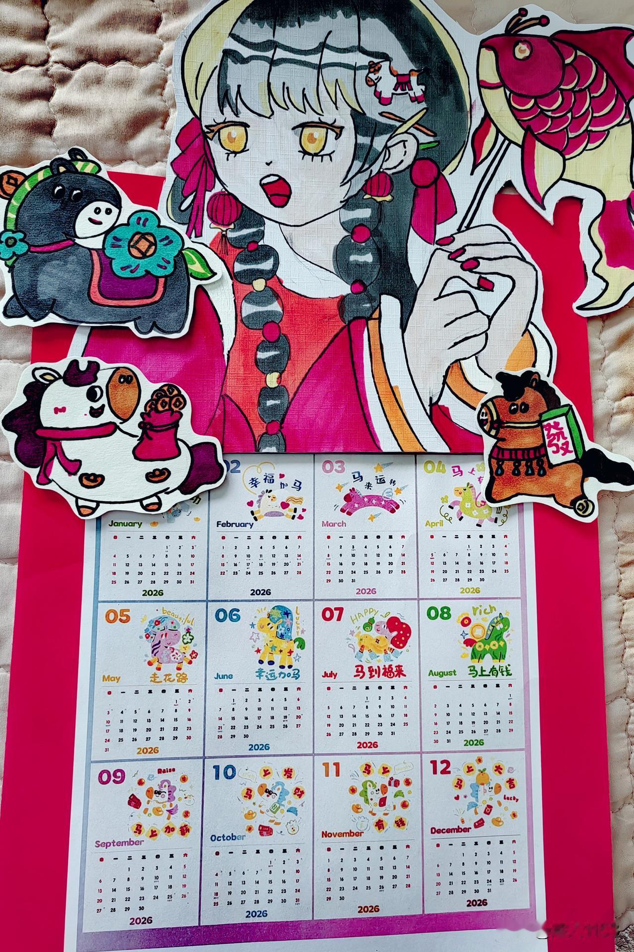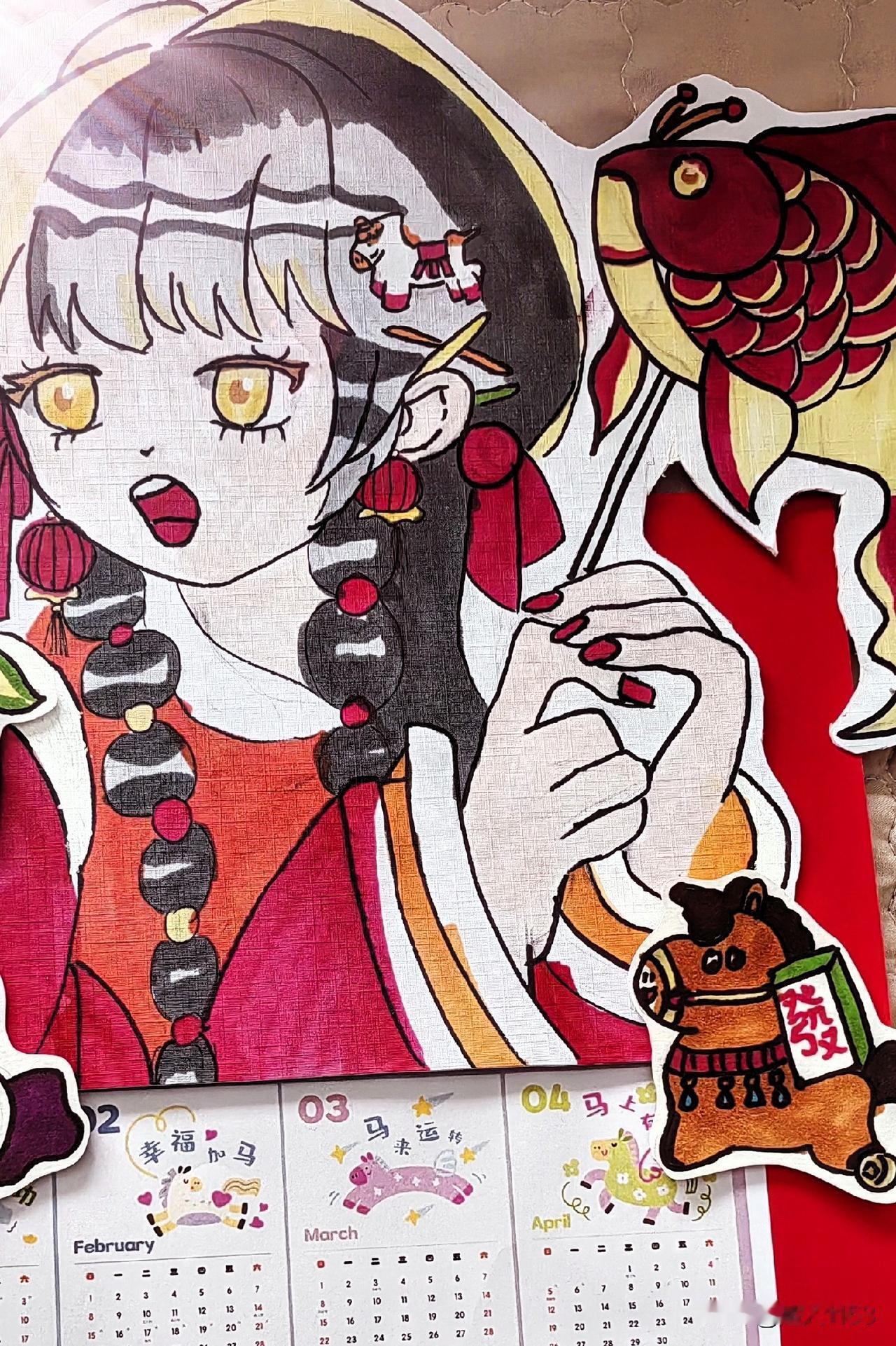 友们又是美好的一天! 今天是2月4日,腊月十七。今天立春春回了大地,万物升。新年的脚步越来越近了,这年味也更加的浓了。 今天小宝去了少年宫, 这也是年前的最后一节课。少年宫也布置的年味浓浓,挂满了漂亮的红灯笼。 今天小宝画了一幅画, 动漫小姑娘鱼跃龙门,迎接新年喽!并做了2026年的日历,画的还真不错。又用橡皮泥,做了橡皮泥的马迎新春。 迎新春张灯结彩, 喜气洋洋伴福来。鱼跃龙门马年到,瑞马欢腾福运到。一起迎新年喽!