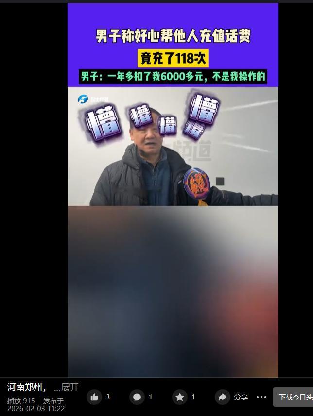 河南郑州,男子好心给一老太太充50元话费,可从那后,男子发现莫名被扣了6000元,他一查看3天自动充一次话费,共充了118次,6千块就这么没了,男子找支付平台客服一问,对方回复让人更加迷惑了? 2026年1月8日,郑州的气温或许寒冷,但真正让周先生手脚冰凉的,是手机屏幕上一列密密麻麻的红色负数。 这不是一次性的巨额盗刷,而是一种更让人毛骨悚然的“钝刀割肉”。在儿媳协助调出的电子账单里,同一个陌生的手机号码,像一只不知疲倦的电子水蛭,吸附在他的账户上长达数年。 屏幕上的数字冷酷而精准:118次扣款,累计金额6000元。更诡异的是它的频率几乎每隔三天,手机就会无声地震动一次,划走50元。没有短信弹窗,没有密码验证,这笔钱就淹没在日常买菜、打车的流水中,直到今天才被彻底捞出水面。 这一切的源头,仅仅是几年前周先生在街头的一次善念。那时他偶遇一位困窘的老太,处于同情,手动为其充值了50元话费。 谁能想到,那一次点击,竟然在某种隐蔽的算法协议下,变成了一张无法撕毁的“长期供养合同”。 当你把运营商后台的冷数据与人性的温度放在一起对比时,一种荒诞感油然而生。 涉事老太在面对质询时,语气轻松得近乎无辜:“我一个月话费才20块钱,哪知道会充五六千?我不知情。” 运营商后台的铁证却狠狠抽了这番话一记耳光。数据显示,该号码月均话费消耗高达400多元,且几乎全部为语音通话,没有流量支出。 这就很有意思了。在如今网络通话普及的年代,一个老人的老年机要如何才能一个月打掉400块话费? 唯一的逻辑解释是:当受赠者无意中发现“只要余额低于20元,就会有人自动买单”这个系统漏洞后,她便不再压抑通话需求,甚至可能成为了某种高频通话的“中转站”。那条“余额不足20元自动充值50元”的后台指令,本是为了方便用户的贴心设计,此刻却成了激发人性贪婪的完美温床。 每三天一次的触发频率,恰恰证明了另一端的使用者正在以一种近乎疯狂的速度消耗着这“免费的午餐”。当周先生试图拨通那个号码讨个说法时,听筒里传来的只有忙音——他被拉黑了。这种拒绝沟通、甚至反咬一口嫌“烦”的态度,恰恰构成了法律上“主观恶意”的最好注脚。 但这仅仅是人性的恶吗?不,系统的冷漠同样难辞其咎。当周先生找到支付平台讨要说法时,客服的回应像是一段编好的程序:“经核查,您已开通免密支付与自动充值服务,可能是领取红包或优惠时误触协议。” 一句“误触”,就把平台在UI设计上挖的坑填得干干净净。在那些花花绿绿的“领红包”按钮背后,往往用极小的灰色字体折叠了“同意开通自动续费”的条款。对于像周先生这样的老年用户,这不叫契约精神,这叫“数字陷阱”。 依据《民法典》第148条,这种基于重大误解甚至欺诈手段诱导的民事行为,受害方完全有权请求撤销。老太不仅构成了不当得利,如果被证实明知漏洞而恶意刷单,这甚至触碰了诈骗的红线。目前,虽然自动充值已被切断,但这6000元的追回之路依然漫长。 这个发生在2026年初冬的故事,给所有家庭敲响了警钟:数字时代的“免密支付”,正在成为老年人财产安全的黑洞。不要迷信“我不转账就没事”。请立刻拿起父母的手机,做一次彻底的“数字大扫除”。关掉所有“小额免密支付”的开关,逐一核查“自动扣款/代扣协议”的签约列表。 最重要的一点,查账时不要只看时间线,要学会按“商户”或“项目”汇总。因为只有将那些不起眼的50元累加在一起时,你才能看清那个潜伏在屏幕背后的巨大深渊。