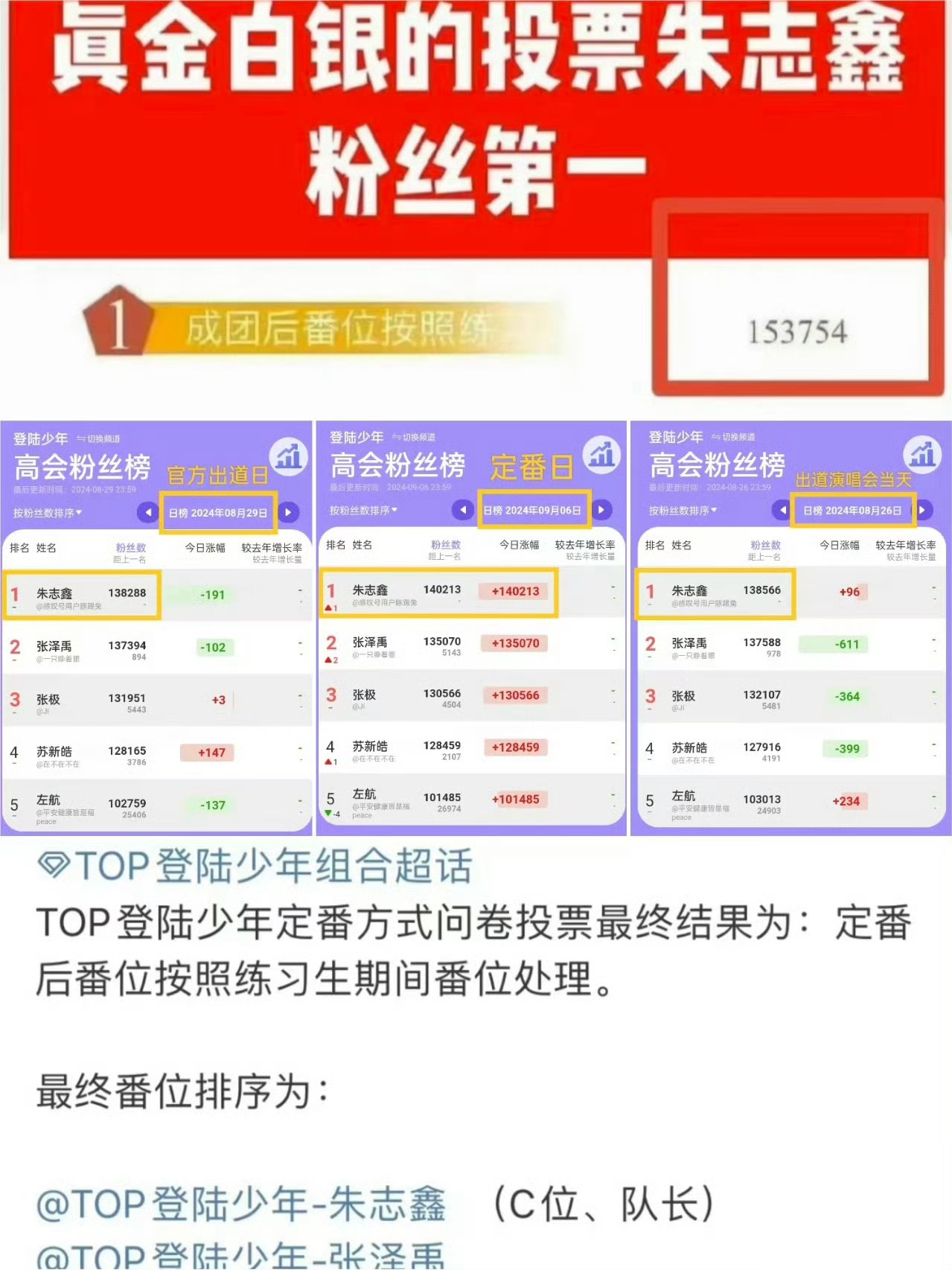 时代峰峻回应TOP番位争议朱志鑫堂堂正正第一名!时代峰峻赶紧还朱志鑫单人外务!还