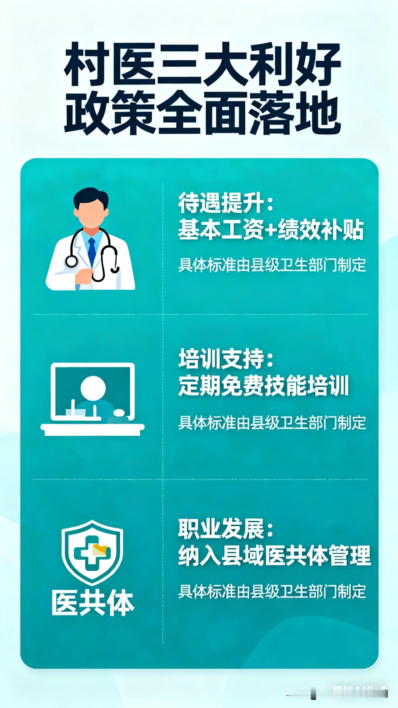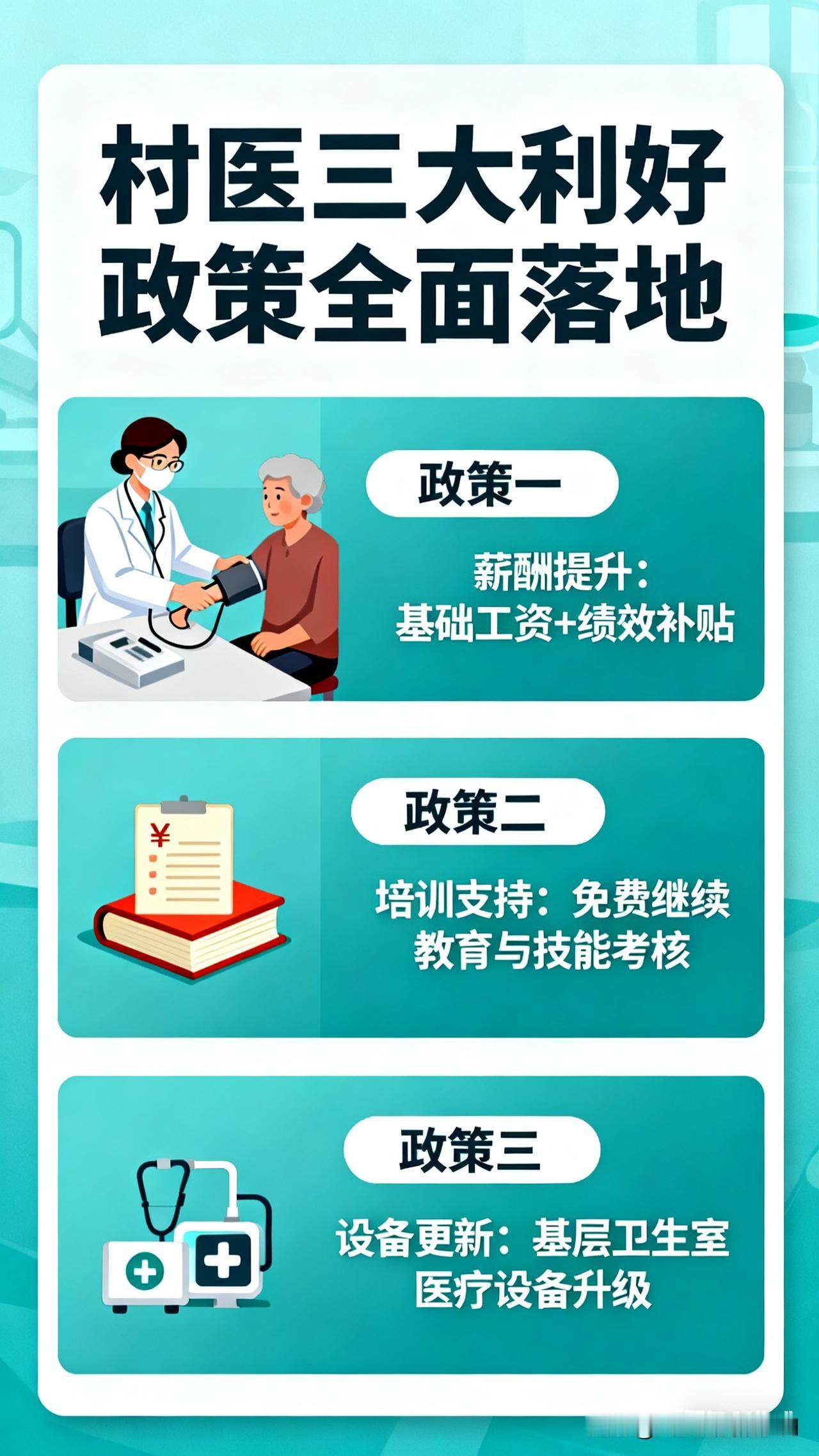 基于政策文件核心内容,我将围绕“人才队伍建设、待遇保障提升、服务体系完善”三大核心利好展开创作,结合具体政策细则与地方落地案例,凸显政策对乡村医疗的实质性赋能。 村医三大利好政策全面落地 筑牢乡村健康守护网 乡村医生是亿万农村居民的健康“最后一公里”守护人,他们的执业状态直接关系到乡村振兴与健康中国战略的深度落地。近日,随着《关于进一步深化改革促进乡村医疗卫生体系健康发展的意见》等系列政策的全面推进,人才引育、待遇保障、服务升级三大核心利好加速落地,为乡村医疗卫生事业注入强劲动能,让千万村医吃上“定心丸”,让亿万农民收获“健康福”。 一、人才引育双向发力,筑牢专业队伍根基 乡村医疗的振兴,核心在人。此次政策体系以“扩增量、提质量、稳存量”为目标,构建起多维度人才保障机制。在引才方面,大学生乡村医生专项计划持续扩容,医学专业高校毕业生可免试申请乡村医生执业注册,到中西部艰苦边远地区服务满3年的毕业生还能享受学费补偿与国家助学贷款代偿政策,截至目前已有4300名大学生村医扎根基层 。同时,艰苦边远地区县乡医疗机构公开招聘倾斜政策落地见效,“县管乡用、乡聘村用”的人才流动机制打破地域壁垒,让优质医疗人才“下得去、留得住”。 在育能方面,政策明确到2025年乡村医生中具备执业(助理)医师资格的人员比例提升至45%左右的目标,通过全科医生转岗培训、定期进修等方式,推动在岗村医向专业化、规范化转型 。新疆等地还针对性开展技能提升工程,将基本公共卫生服务、中医药适宜技术等纳入必修课程,让村医“懂预防、能诊疗、会康复”,逐步形成以执业(助理)医师为主体、全科专业为特色的乡村医疗服务队伍。 二、待遇保障全面升级,解除村医后顾之忧 “收入有保障、养老有着落”是稳定村医队伍的关键。此次政策从收入、社保、荣誉三个维度构建全方位保障体系,让村医的付出与回报成正比。收入方面,多渠道补偿机制落地生根,基本公共卫生服务补助、基本药物制度补助、一般诊疗费等政策动态调整,新疆全区村医平均收入已达5100元/月,伊犁州、哈密市等地区还在省级标准基础上人均增加400至2380元补助 。更值得关注的是,乡村医疗卫生机构可突破事业单位工资调控水平,医疗服务收入扣除成本后主要用于人员奖励,全科医生工资水平逐步与当地县级公立医院同等条件临床医师衔接,“多劳多得、优绩优酬”的激励机制充分激活执业热情。 社保与荣誉保障同样扎实。未纳入事业编制的村医可自愿参加企业职工或城乡居民基本养老保险、医疗保险,有条件的地区还给予参保补助,目前新疆已有超80%的村医纳入养老保险体系 。同时,乡村医疗卫生人员荣誉表彰制度不断完善,各类人才项目、评奖评优向基层倾斜,让村医的职业价值得到全社会认可,执业荣誉感显著提升。 三、服务体系提质增效,提升乡村就医体验 政策红利最终要转化为群众的就医获得感。在服务能力升级方面,乡村医疗卫生机构一体化管理全面推进,符合条件的村卫生室逐步纳入医保定点管理,实现医保结算“不出村”,让农民群众“小病就近看、报销更便捷” 。县域卫生健康综合信息平台加快建设,远程会诊、互联网复诊、人工智能辅助诊断等数字化服务向乡村延伸,偏远地区农民也能享受到县级医院的优质诊疗资源。 基础设施建设同步提速,中心乡镇卫生院逐步达到县级医院服务水平,村卫生室标准化建设全覆盖,急诊急救、常规手术等服务能力显著提升。新疆等地通过“乡卫生院巡诊+村卫生室接诊”的模式,解决了人口较少行政村的医疗服务覆盖问题,同时推广中医药适宜技术,让乡村医疗服务既“便捷”又“有效”。疾病预防控制能力也全面加强,乡镇卫生院标准化发热诊室(哨点)全覆盖,村卫生室传染病疫情报告责任压实,筑牢农村公共卫生第一道防线。 三大利好政策的落地,既是对乡村医生群体的关怀与赋能,更是对乡村振兴战略的精准支撑。从人才队伍的专业化升级,到待遇保障的全方位覆盖,再到服务能力的质效提升,政策红利正层层传导、步步落地,让乡村医疗卫生体系从“有”向“优”转变。随着各项政策的持续深化,相信会有更多优秀人才投身乡村医疗,千万村医将以更饱满的热情守护乡村健康,让健康之花绽放在广袤乡村,为全面推进健康中国建设、实现共同富裕筑牢健康根基。