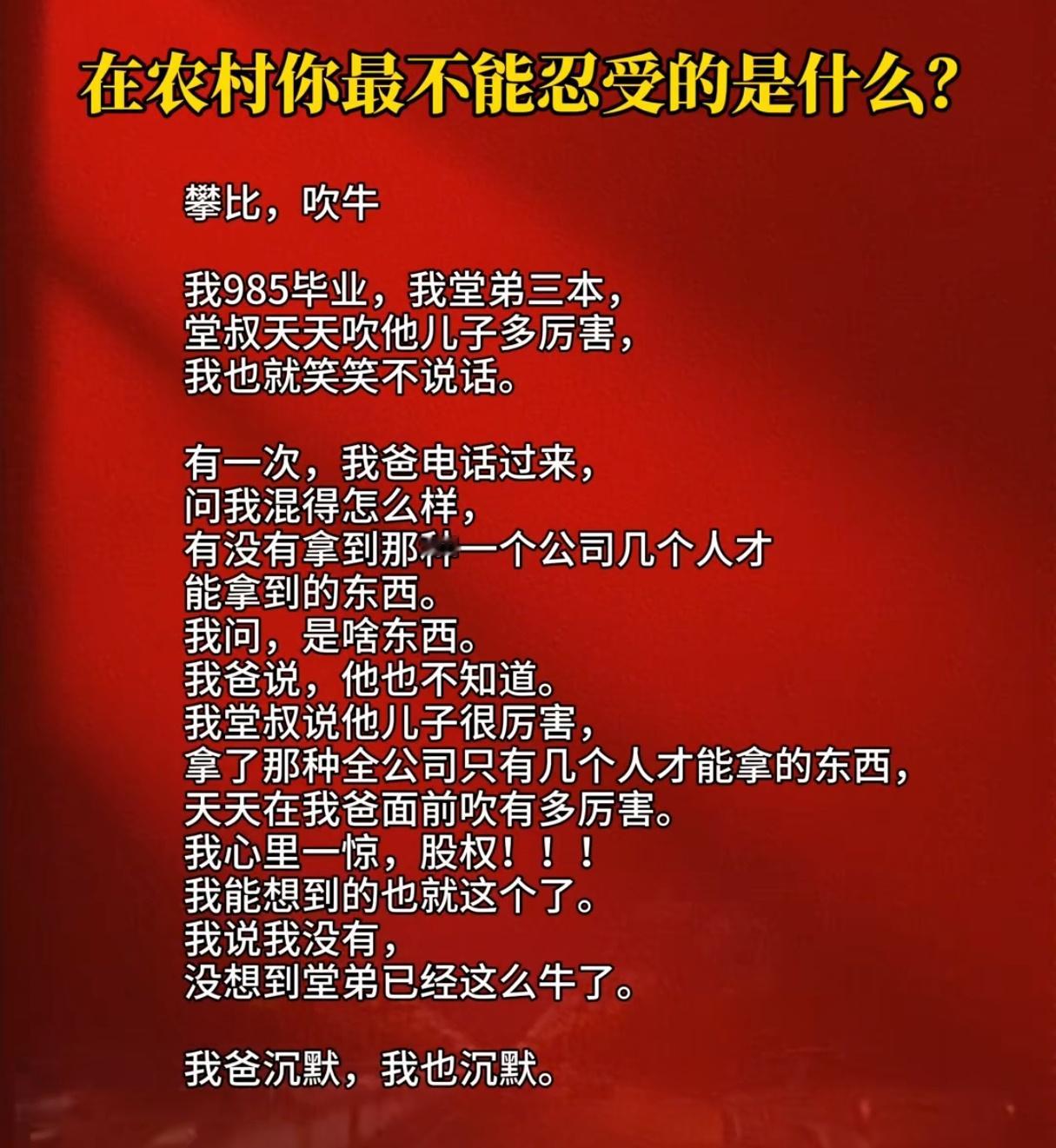 在农村,你最不能忍受的是什么?