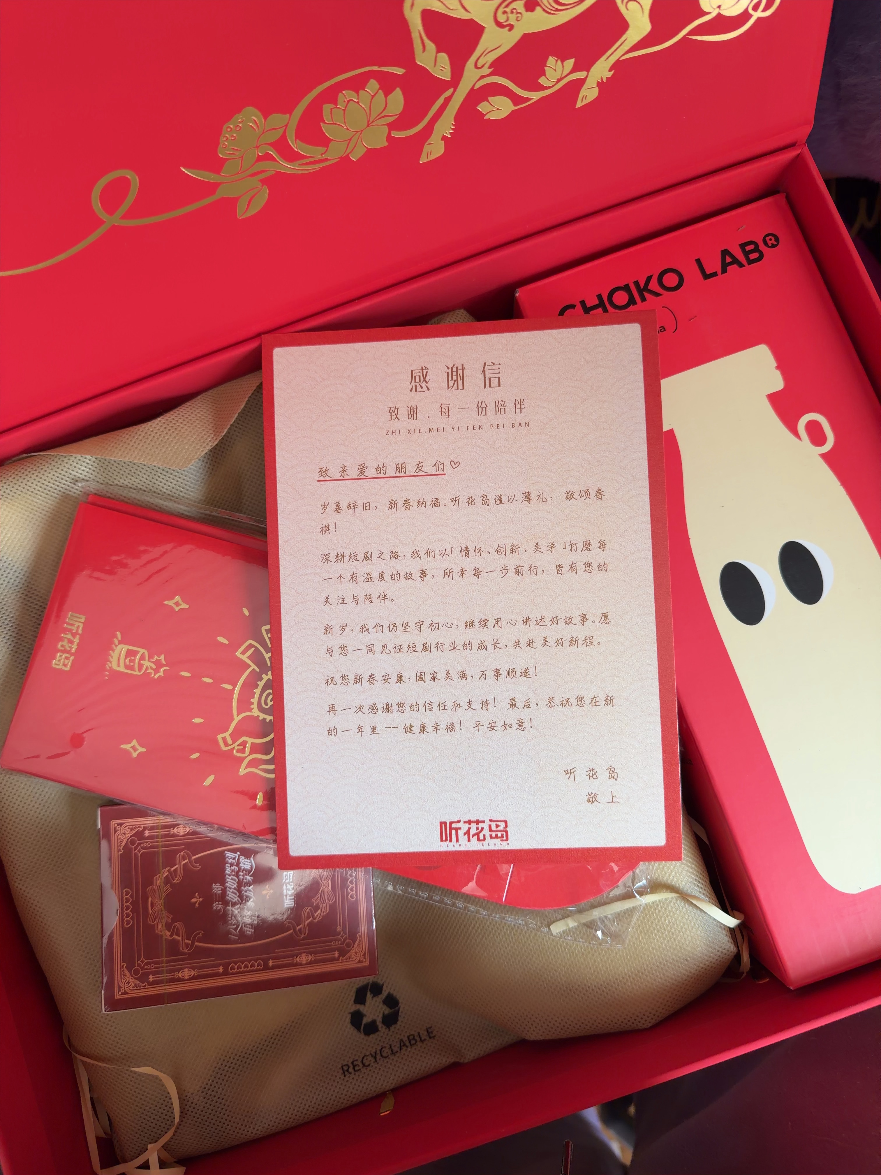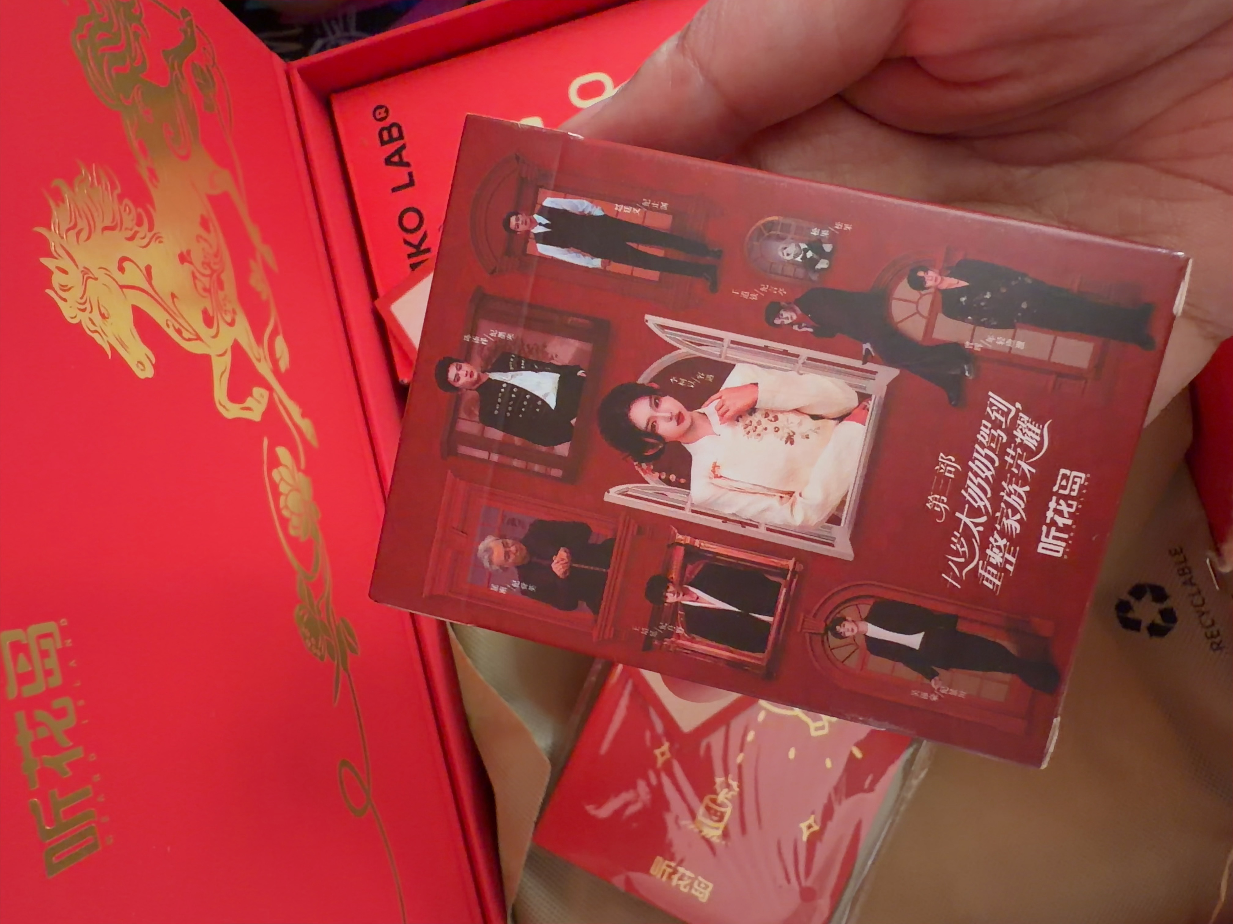 收到听花岛新年礼盒! 哇!太奶奶扑克牌是小卡一样的!每张图都不同!祝新的一年继续