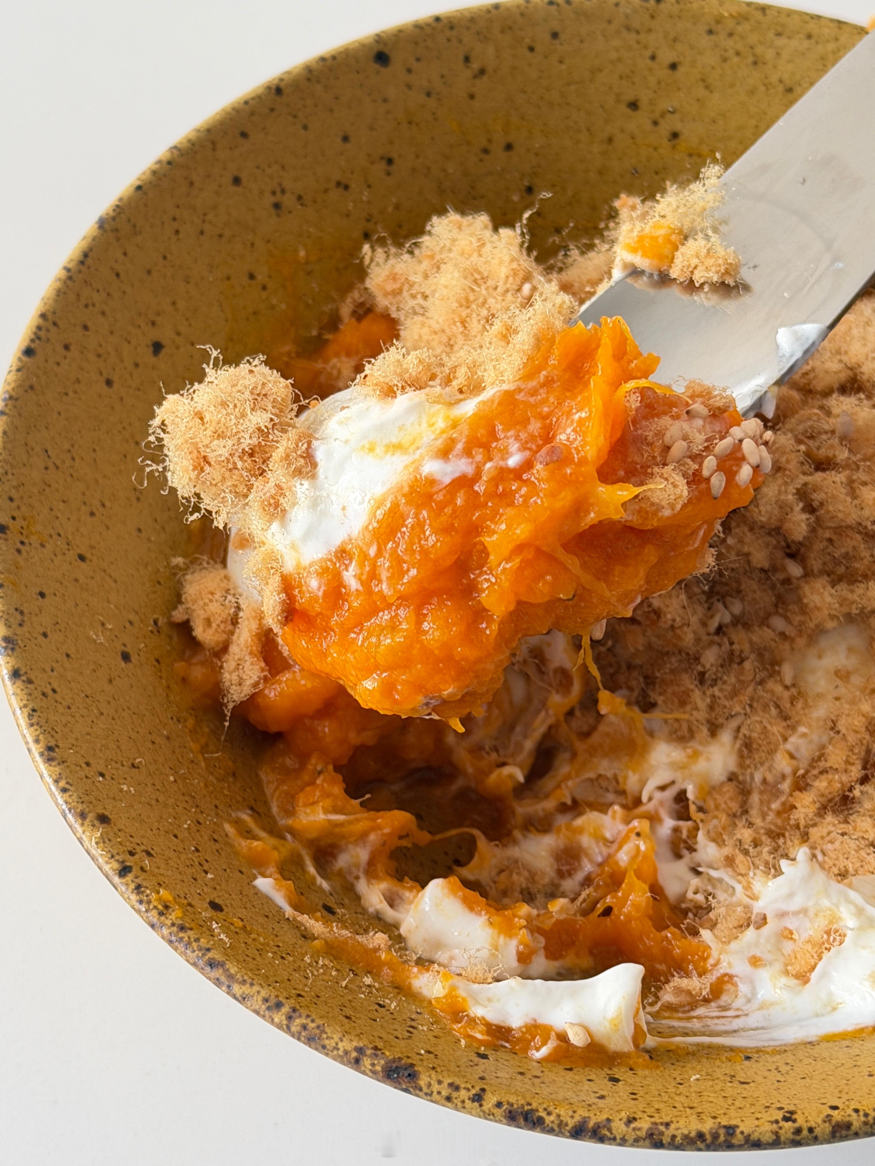 用熟南瓜做了个伪咸蛋黄酱,减脂太完美啊