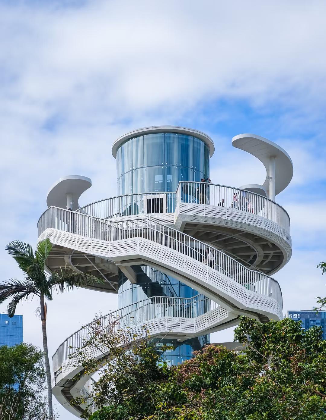深圳最美水库绿道,湖光塔赏山水城同框🏞 罗湖新开放的「湖光塔」,绝对是今年最惊艳的城市观景台!它矗立在环深圳水库绿道旁,设计像一缕“天际流云”,19.5米高的双螺旋楼梯,360°视野无敌:一面是碧波水库与梧桐山🏞,一面是罗湖繁华城景🏙。傍晚18:00后塔身亮起星光灯,夜景更梦幻。 · 🚶徒步方案 翠湖文体公园->空中廊桥->湖光塔->东湖公园 全程约2公里,可以轻松走完,把湖光塔和两个公园一起打卡,特别适合周末休闲放松~ · 🚗 交通指南 🚇 地铁:地铁5号线至 “布心站” ,从D口出站,步行或骑共享单车到徒步起点——翠湖文体公园 快来这里,同时收藏山、湖、城三重画卷吧! 记录我的城市 深圳周末去哪儿 深圳拍照好去处 深圳户外徒步 深圳徒步路线 深圳拍照 城市轻徒步 发现城市好去处