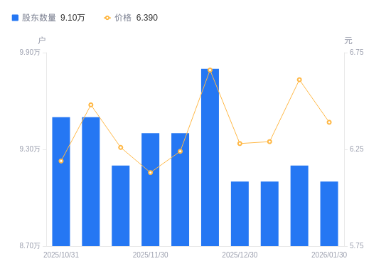 日期A股户数(户)流通A股户均持股数(股)户均持股市值(万元)2026-01-30910008118.515.192026-01-20920008030.265.312026-01-10910008118.515.112025-12-30910008118.515.102025-12-20980007538.625.022025-12-10940007859.414.902025-11-30940007859.414.822025-11-20920008030.265.032025-11-10950007779.005.042025-10-31950007779.004.82