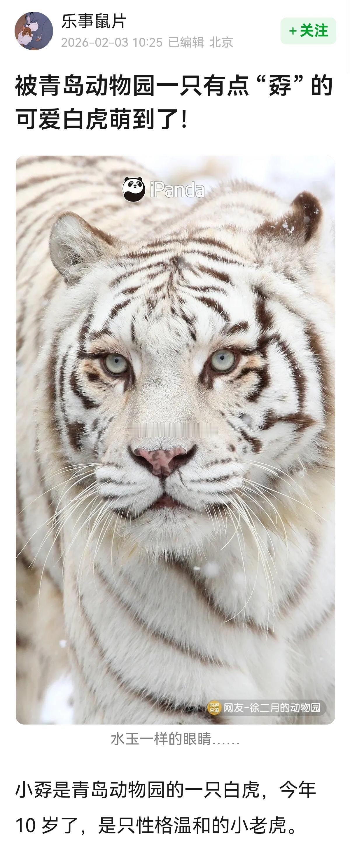 被青岛动物园一只有点 “孬” 的可爱白虎萌到了!!