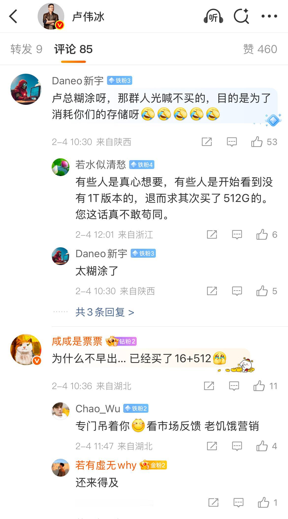 反串的真不少,REDMI Turbo 5 max增加1Tb版本,评论区有人说这些人是光喊不买。麻烦你看看卢总评论区,喊着增配的有多少人。还有很多在吐槽刚开始不早说,说小米是饥饿营销的。说实在的,REDMI TURBO 5系列在REDMI定位就是中端水桶机,当然在友商那里可能属于旗舰配置了已经,但小米还是想把利润让给消费者。所以初心肯定是在内存大涨的情况下,让用户用低价享受科技。而且512确实是日常够用了,奈何手机太畅销,用户有需求,小米才会增配。最后说下价格,国补之前3399首销价格,这个价格香不香,你们说了算。