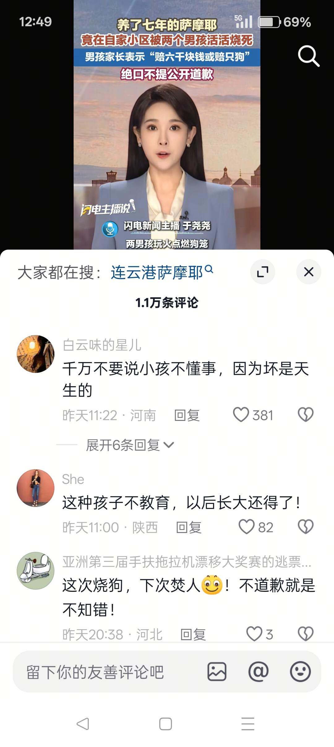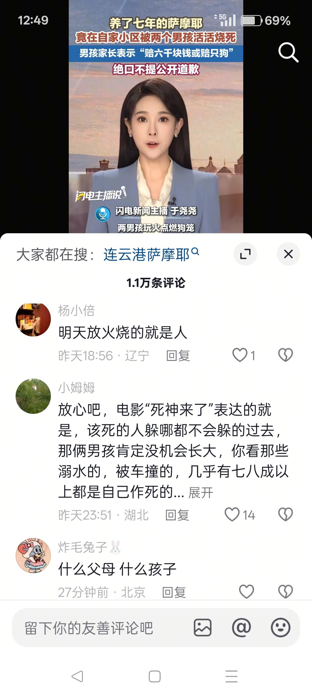 男童意外烧死狗,不是罪大恶极,网暴男童的人罪大恶极! 男童玩烟火,逗玩鸡,却意外点燃了旁边的狗笼。虽然燃火时,男童也求助旁人,但未能有效灭火。 事件的经过简单,对错明显: 但凡头脑正常和理性的人,都会认为是鸡毛蒜皮的小事。毕竟才几岁的孩子,缺乏安全意识,在成长中犯点小错是难免的。作为家长已经道歉并赔偿,态度端正,接下来也该多教育孩子注意防火安全。 然而,猫狗分子和各路形形色色的网暴分子,就像中了狂犬病毒似的,他们发疯地造谣、侮辱、污蔑、夸大事实、怒斥、咒骂、人肉、上纲上线,对一个才几岁的孩子穷追猛打、不依不饶,硬要把孩子说成是不可饶恕的、罪大恶极的罪犯——甚至比电诈分子、强奸犯、杀人犯更可恨。 这样的舆情不是平台的责任吗?不是人性的恶毒吗?我们都是从小长大的,谁没犯过这样和那样的错误呢? 一个把狗看得比人还贵重的社会是病态的。生活在这样的社会环境中是悲哀的! 猫狗分子和网暴分子并不掩饰他们伪善、邪恶、双标,用最恶毒的方式宣泄情绪和戾气,是制造负面舆情、撕裂社会的真正黑手。