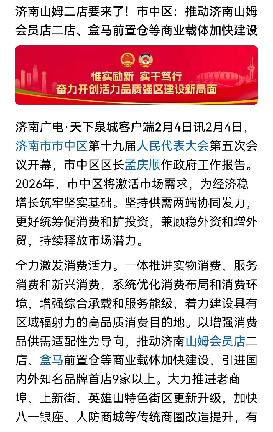 关于济南市中区山姆二店的报道越来越多。要是济南山姆二店开业了,某些网友不得气死了? 目前还没有山姆二店具体的消息,只知道是市中区,据说是南北康片区,目前还没有一个权威的消息。 不过市中区长已经在人代会上做报告了,说明事情还比较靠谱的。 只能说,山姆二店是否落户济南市中,现在持乐观态度吧。 只是如果山姆二店真开业的话,某些网友估计被气死,毕竟济南山姆店是不是山东第一个开业都这么关注,还说济南山姆店是合资的,不是正宗山姆。