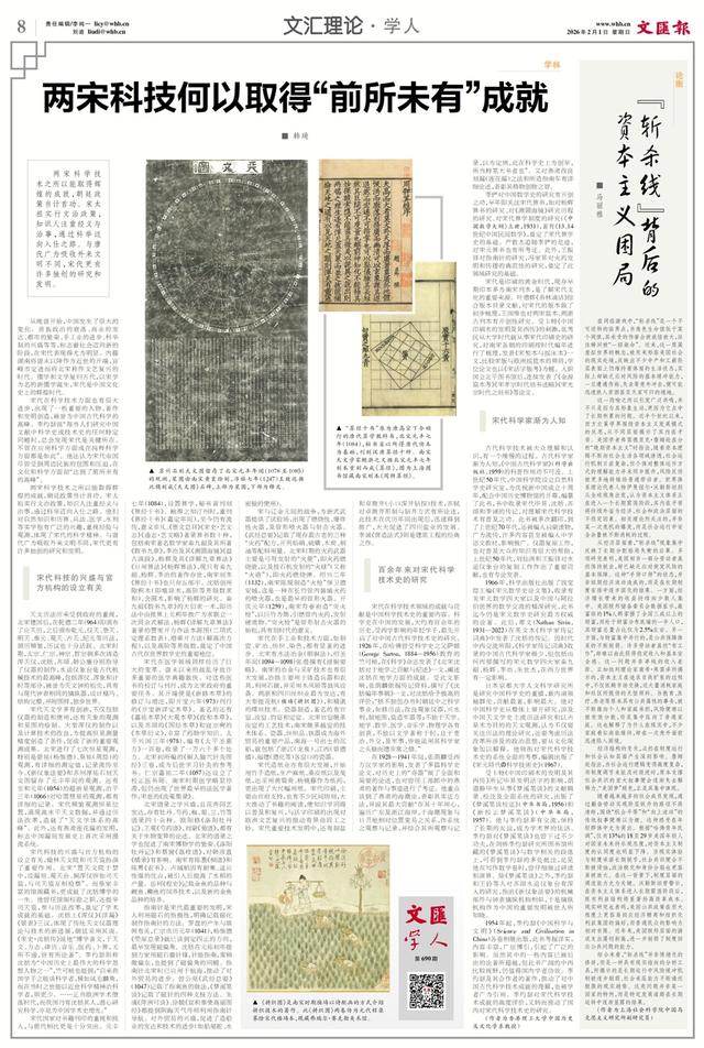 1954年起,李约瑟《中国科学与文明》(ScienceandCivilisationinChina)各卷相继出版,此书考据详实,内容丰富,广征博引,引起了广泛的影响。虽然其中的一些内容已被后出的论著所超越,但此书广阔的中西比较视野,仍值得国内学者仿效。李约瑟及其合作者的著作,推动了对中国古代科学技术成就的理解,也被学者广为引用。李约瑟对宋代科学技术成就的高度评价,又转而推动了国内对宋代科学技术史的研究。