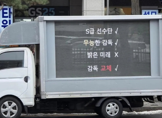 直播吧2月4日讯 此前LCKCUP上有九支战队晋级季后赛,仅HLE率先告别。对此HLE粉丝开启了LCK经典的卡车抗议环节:S级选手阵容✓无能的教练✓光明的未来✗更换教练✓,Hommeout!