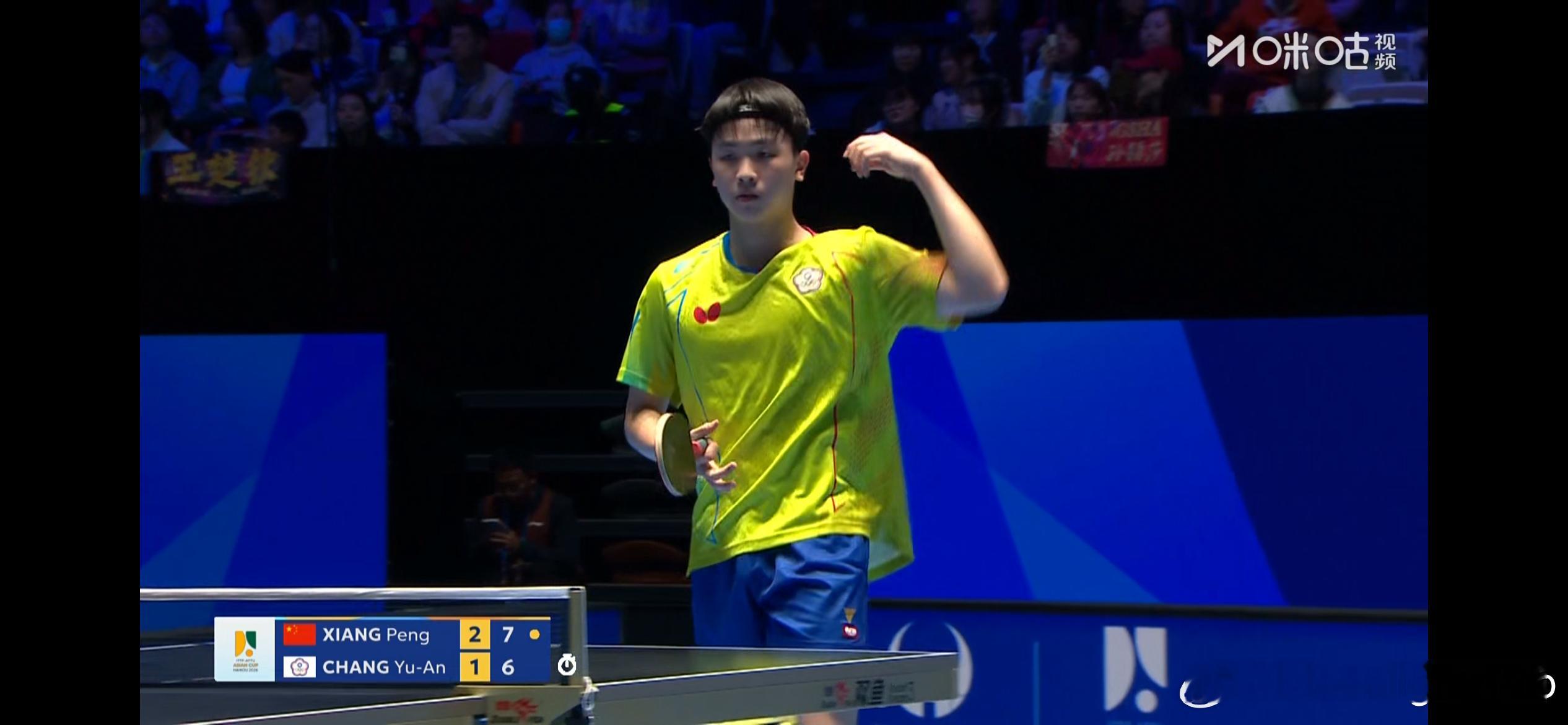 海口亚洲杯男单小组赛第一轮:🇨🇳向鹏3比1张佑安(中国台北)(4-11,11