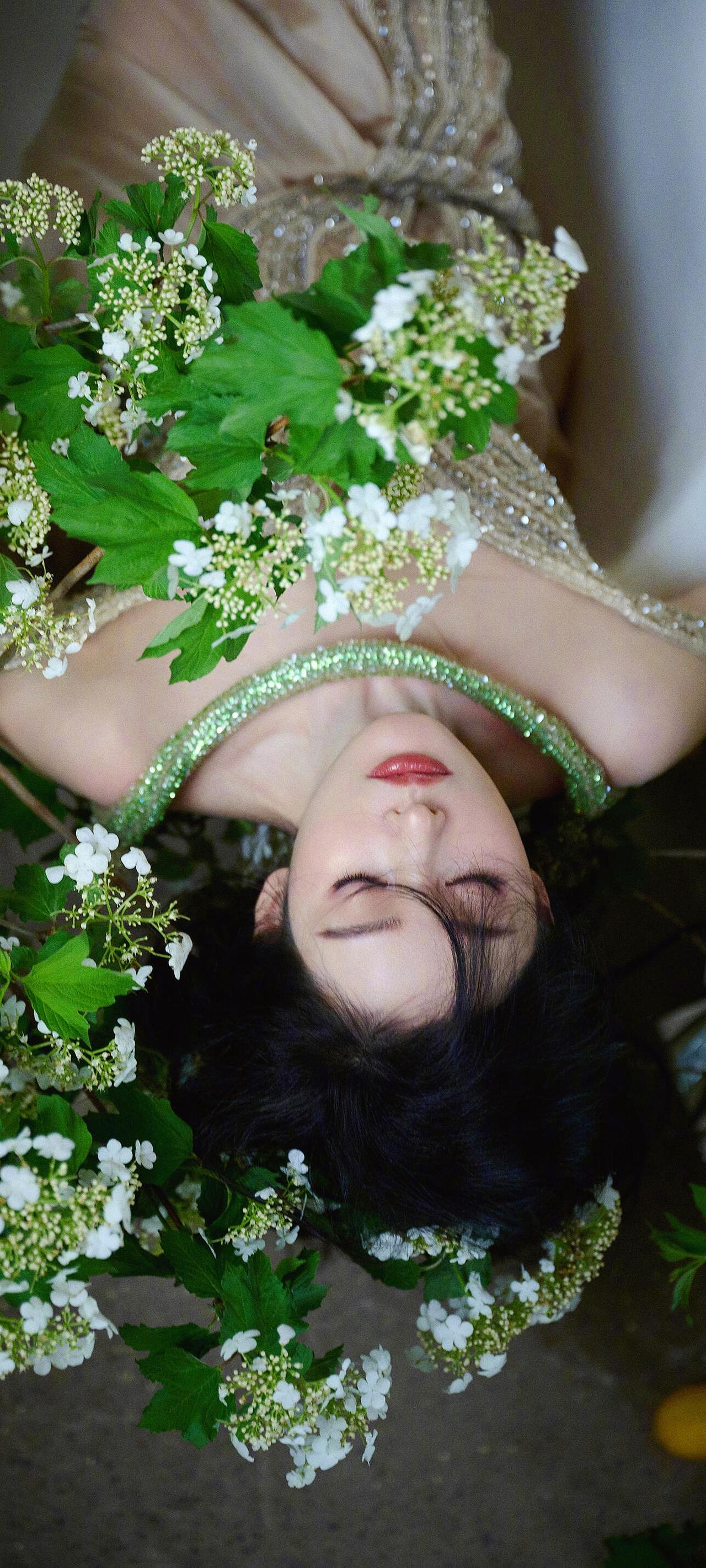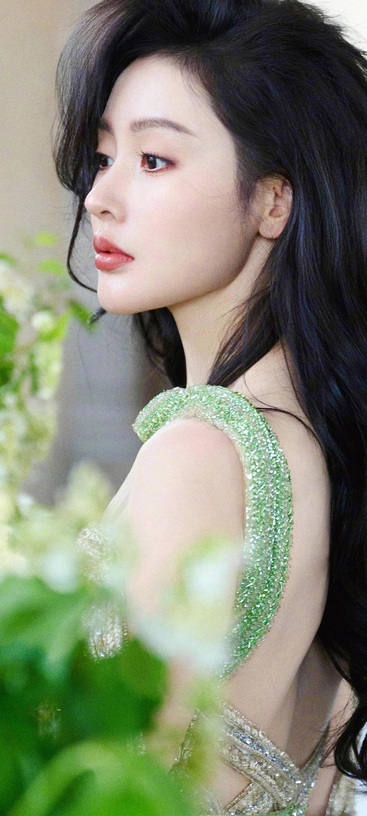 《清芬》 云鬓松垂覆玉肩,轻罗曳地惹春烟。 花光漫浸冰肌色,一顾惊鸿落眼前。 原