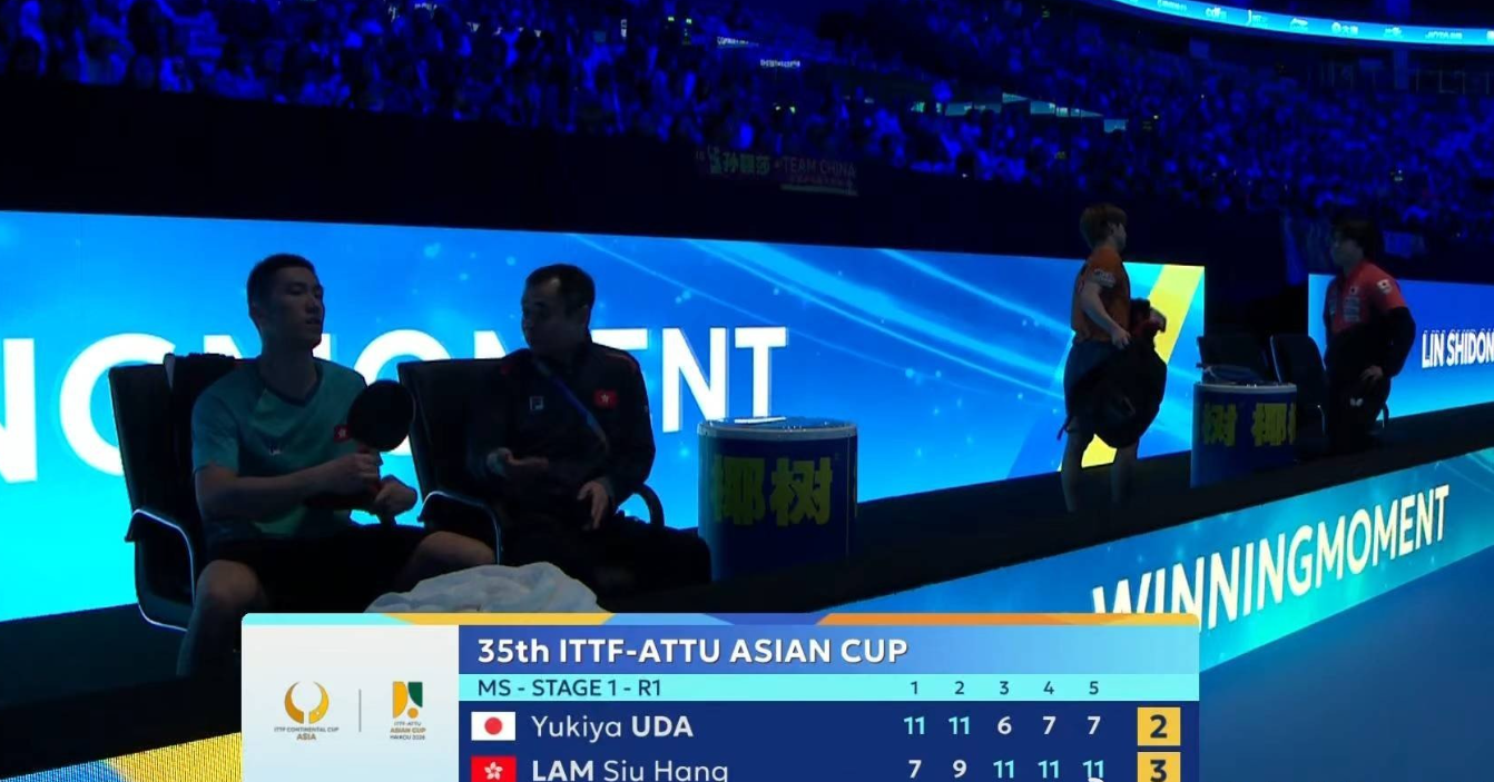 林兆恒3比2宇田幸矢(-7,-9,6,7,7) 2026年国际乒联海口亚洲杯男