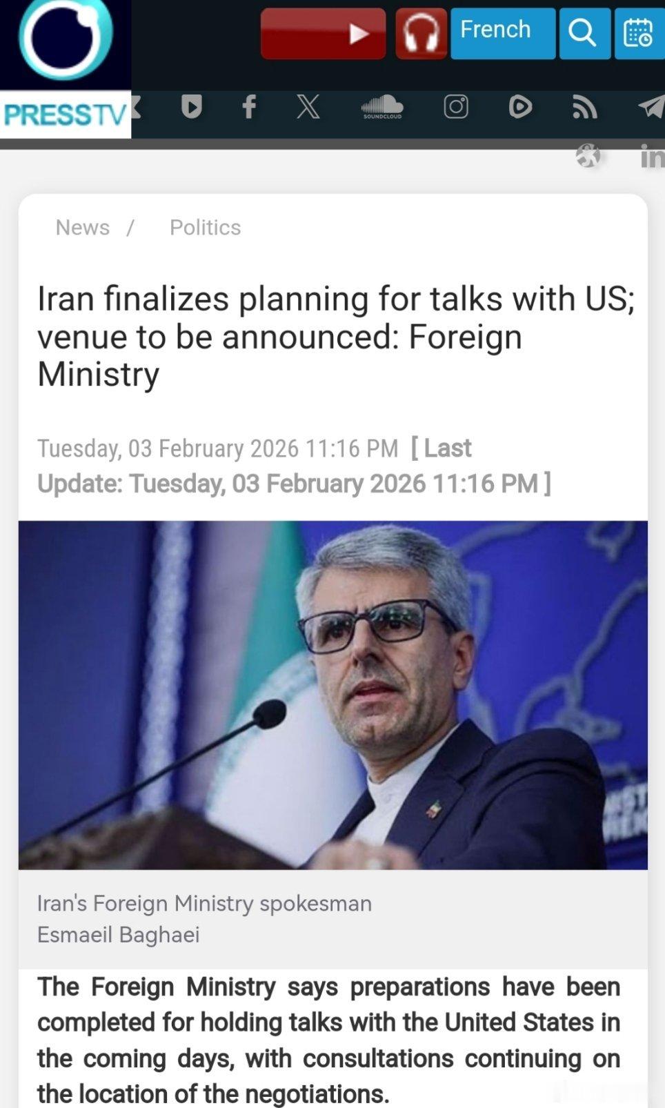 伊朗已确定与美国举行会谈的计划;会谈地点将另行公布:外交部