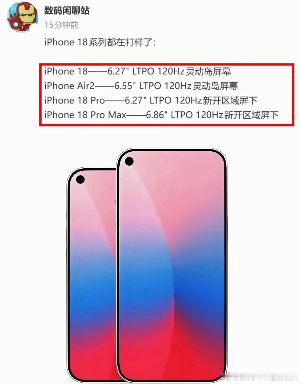 到底是小药丸还是左挖孔啊我还是觉得药丸看着顺眼一点,会不会苹果在提前布局让大家看顺眼这个iPhone 18Pro的正面。iPhone18系列外观出炉