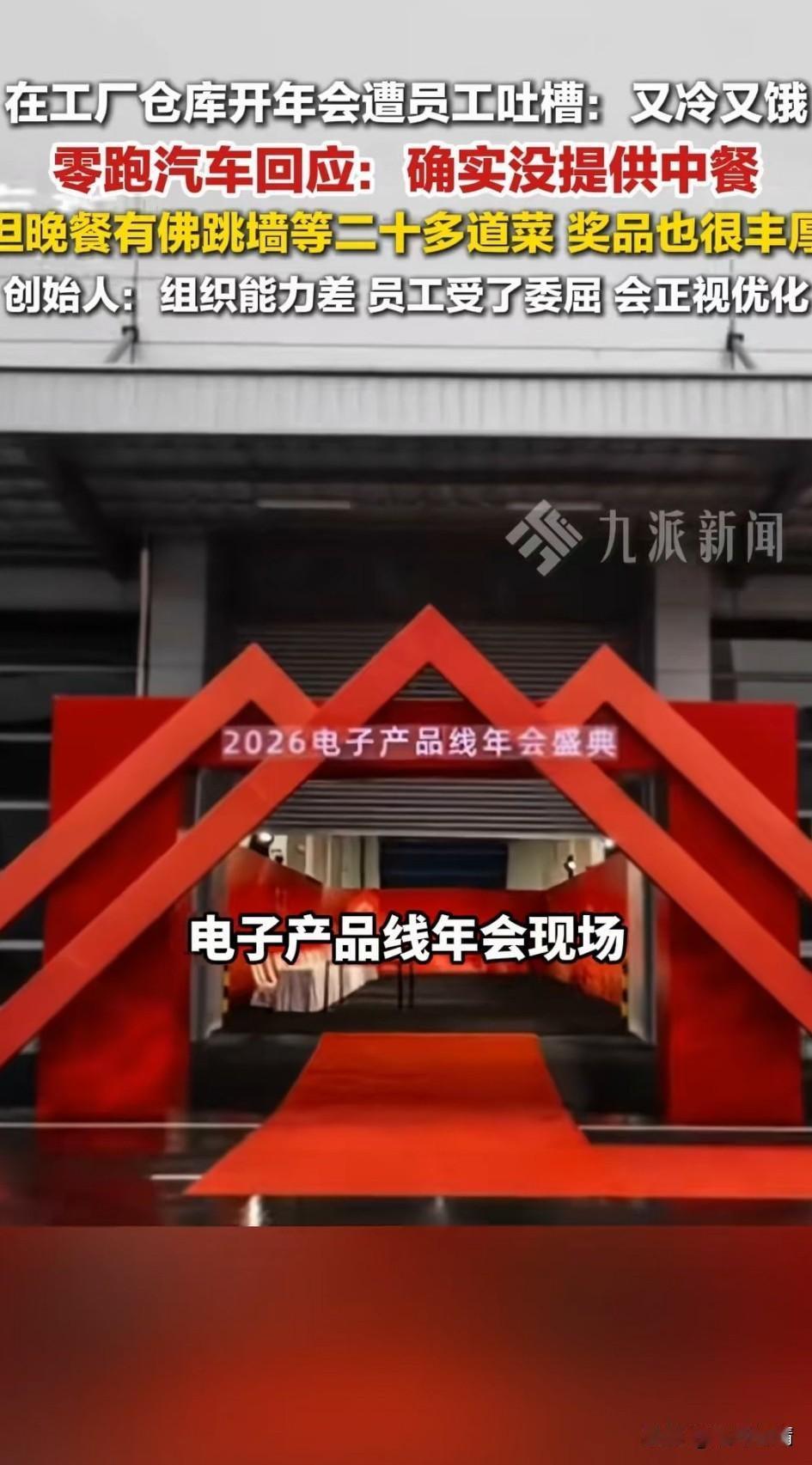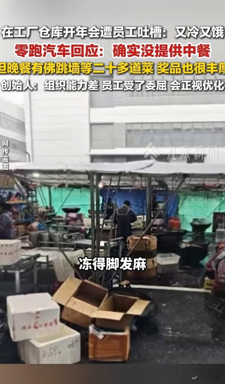 谁能想到新能源的领跑开年会如此寒酸,居然在工厂的仓库开年会, 现场还没有空调, 关键中午还不管饭, 他们的员工纷纷抱怨, 在工厂仓库开年会真的太抠搜了, 现场把人冻得直跺脚, 中午饭人手泡面还要排队接热水, 这样的年会,不如不开! 这年会直接被同行业笑话10年, 领跑老板钱是省了, 但员工的心却寒了, 领跑在国内新能源混的还不错, 可以说是赚的盆满钵满了, 谁也想不到年会居然这样办, 为了省钱,真的是无所不用其极, 别的公司都是挣钱后提高员工待遇, 这公司直接肥了老板苦了员工, 这种公司的格局也大不了, 只管自己吃肉,不给员工喝汤, 如今的成功不过是过眼云烟, 这样搞下去,公司必然走不长久… 大家对于领跑汽车寒酸年会怎么看? 零跑年会 零跑新春年会 零跑年会吐槽