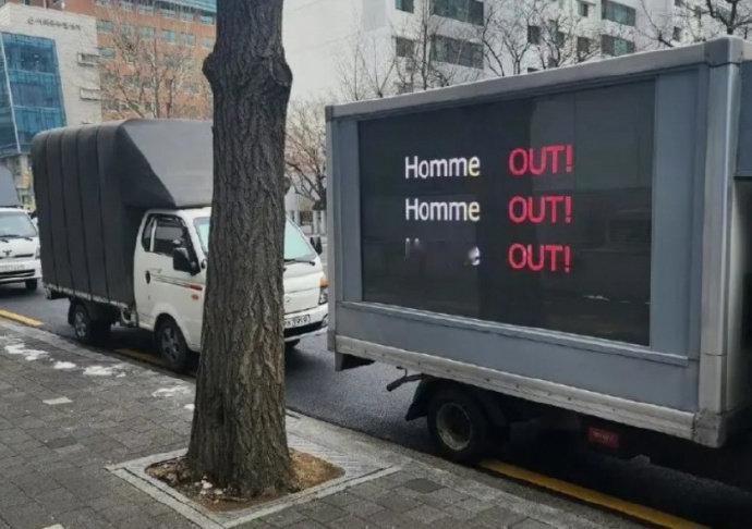 亲爱的红米,点给你的卡车到了!FST卫冕冠军HLE被淘汰后,韩华粉丝开卡车到HLE韩华母公司的行政大楼,要求更换主教练Homme!