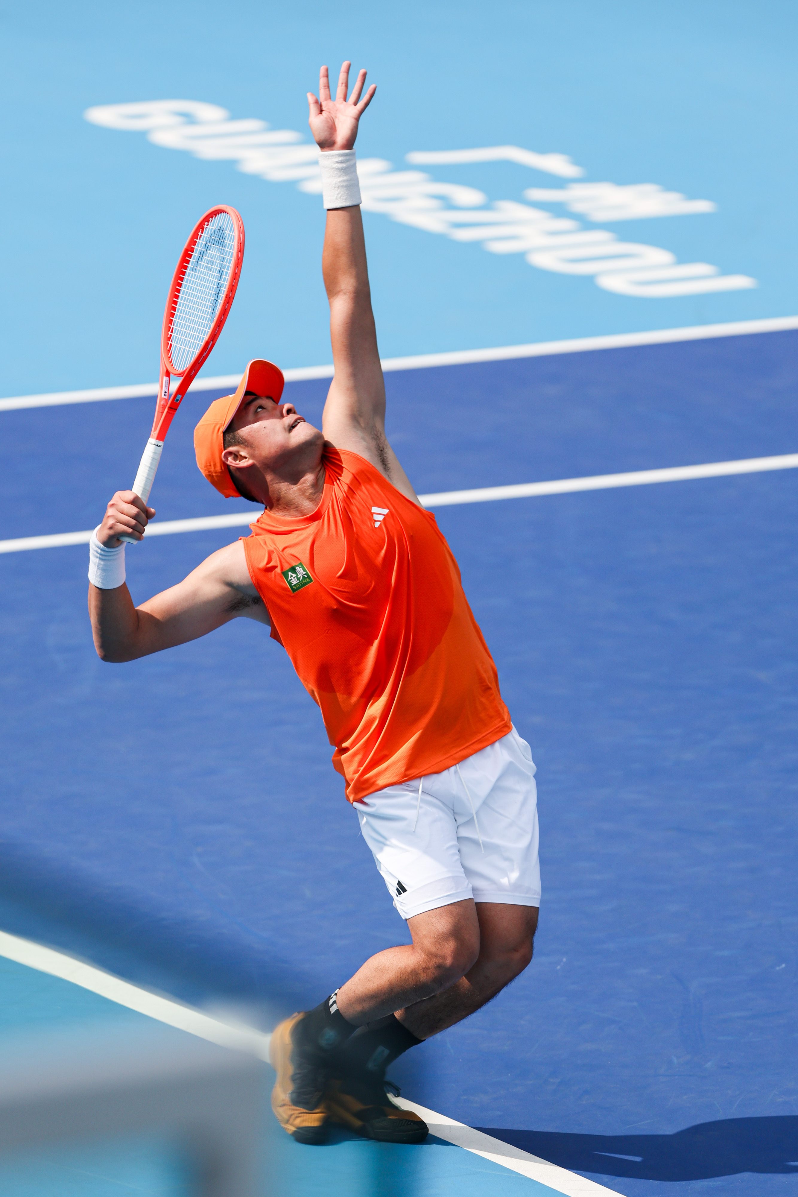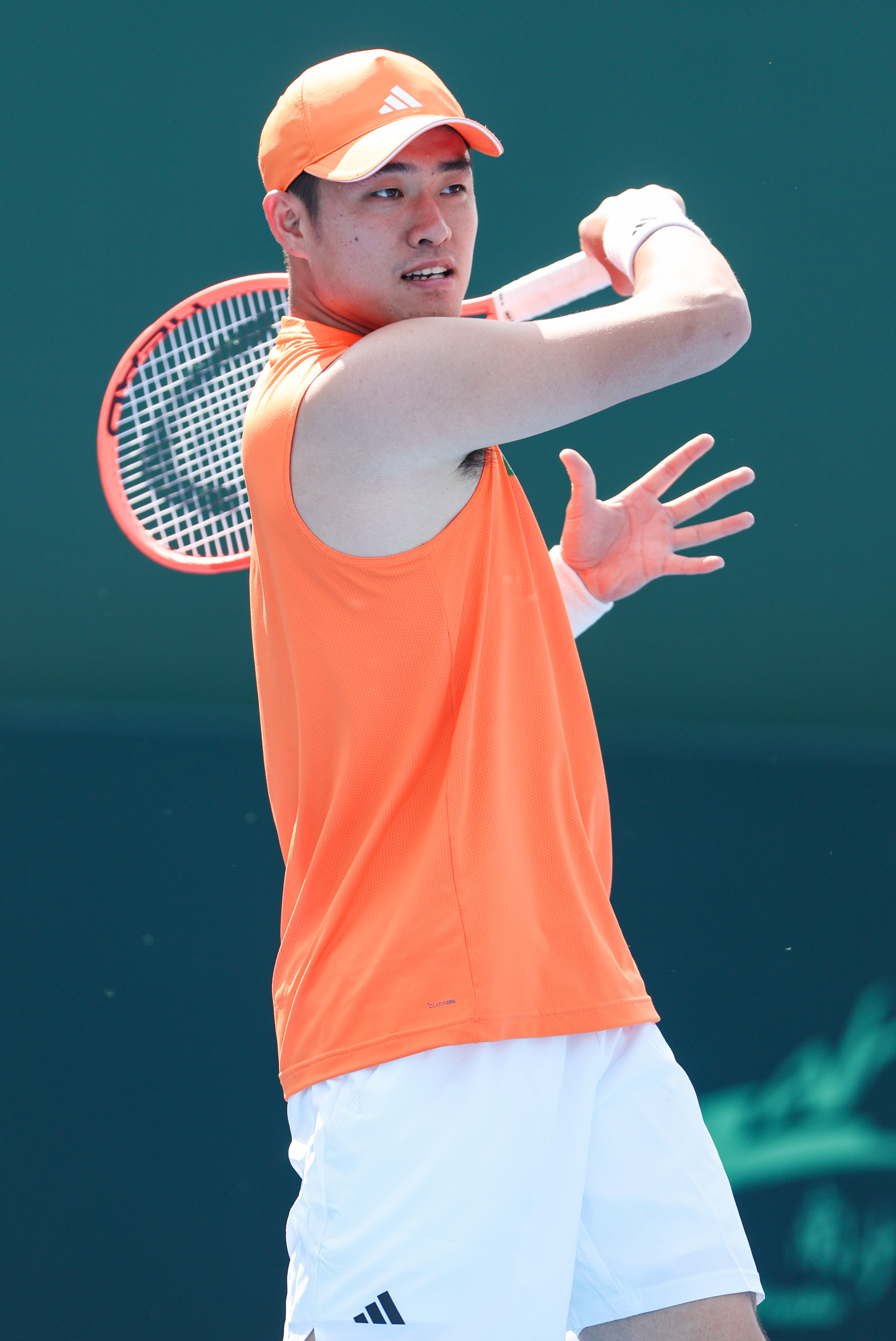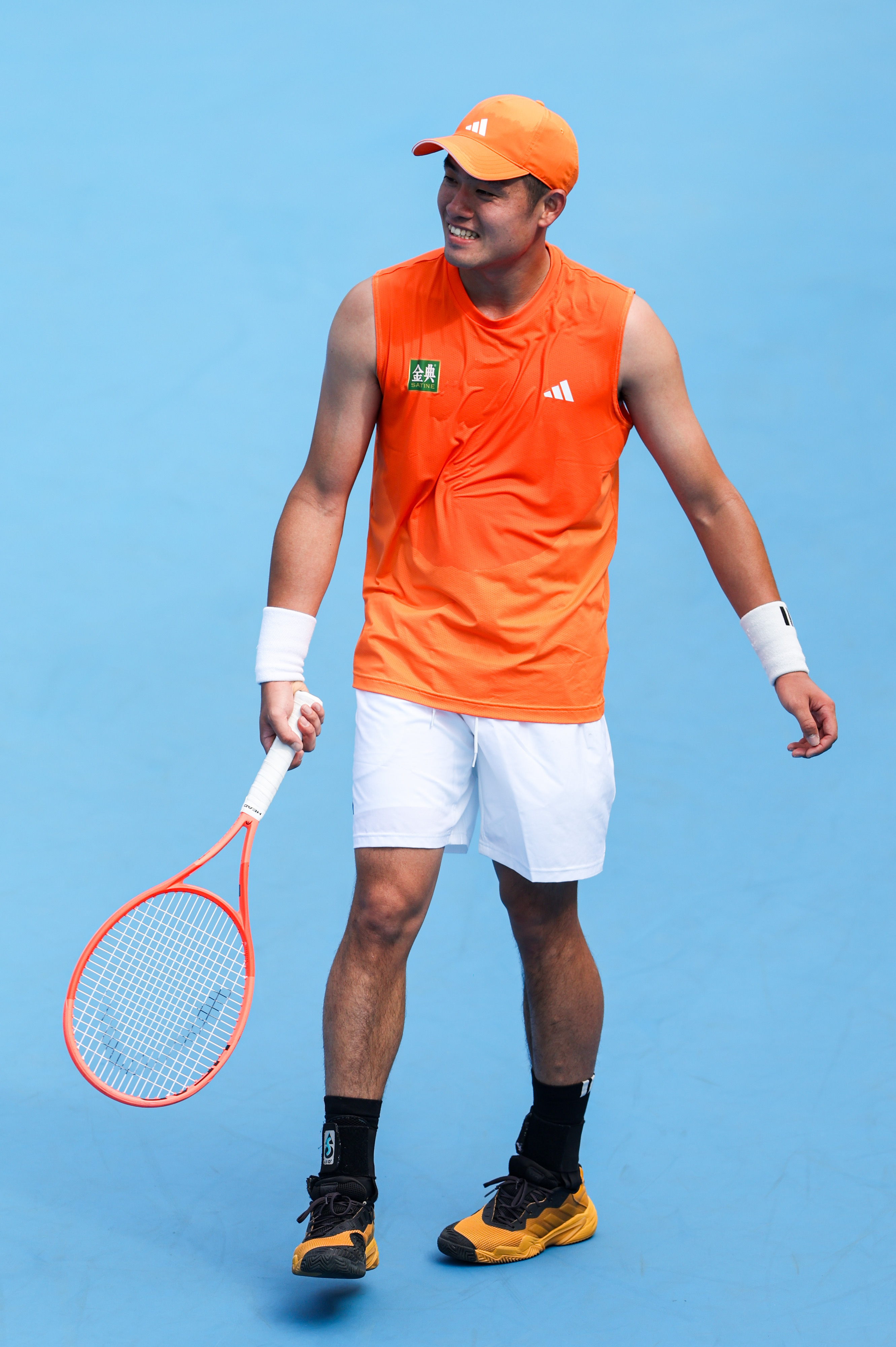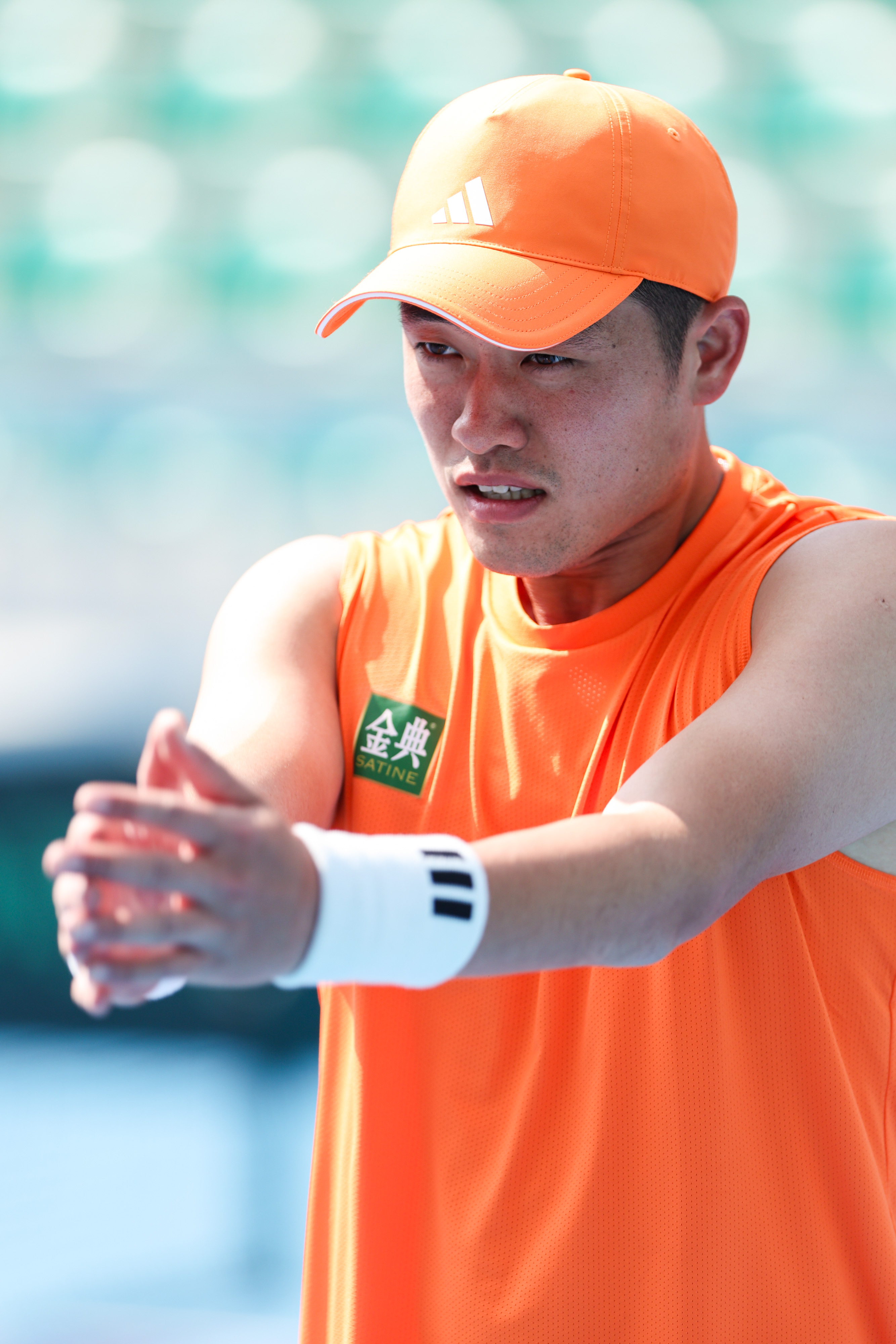 吴易昺这身橙色无袖装很适合他,昨天看了训练,状态依旧不错。