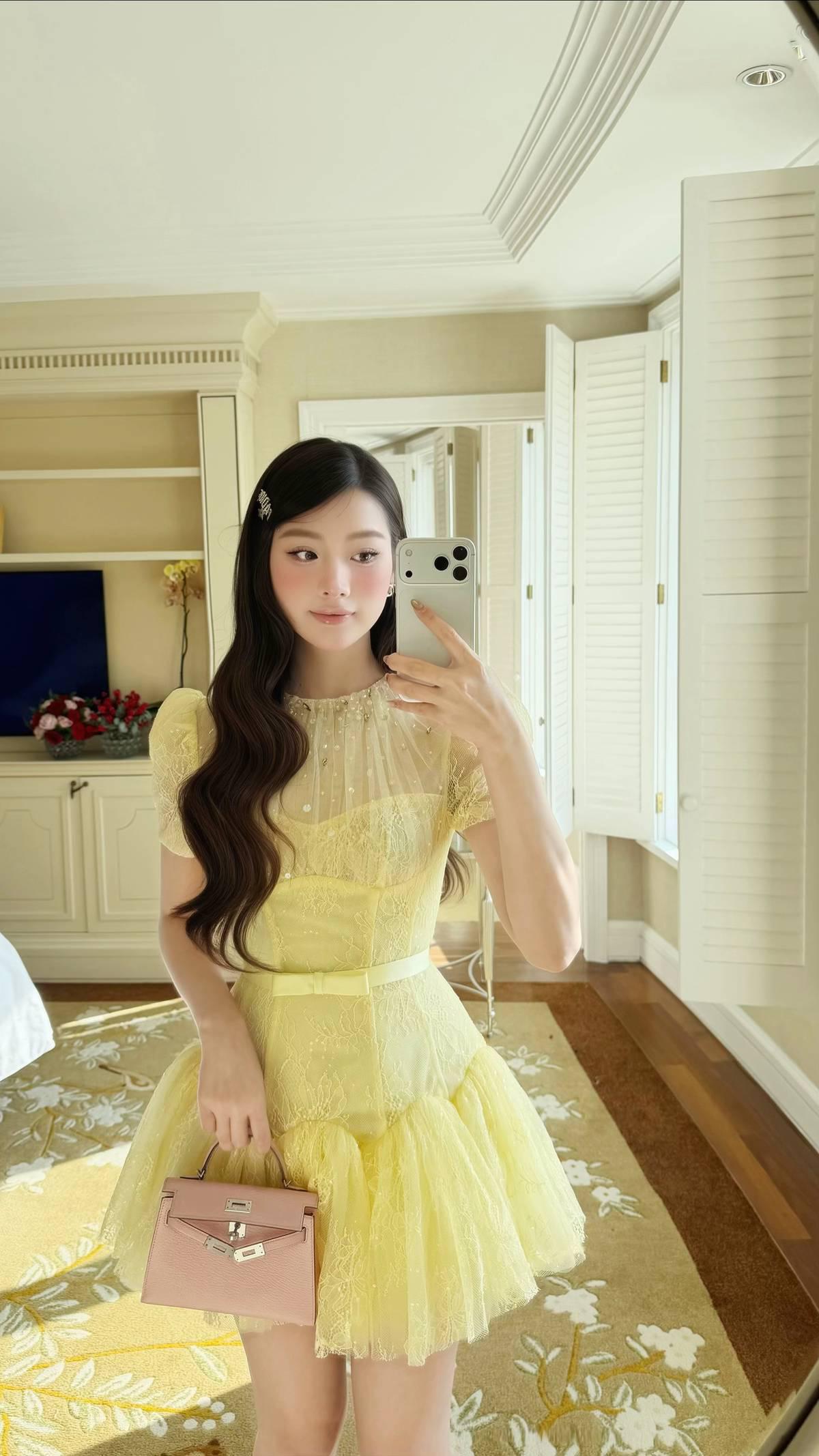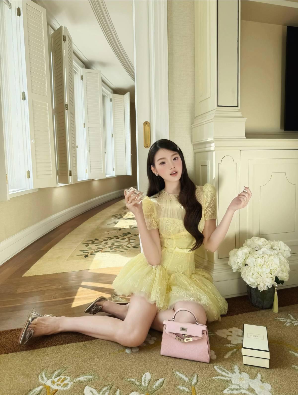 职场轻甜风穿搭粉调底衬着柔婉花枝的衬衫,打破职场着装的沉闷刻板,高腰包臀黑