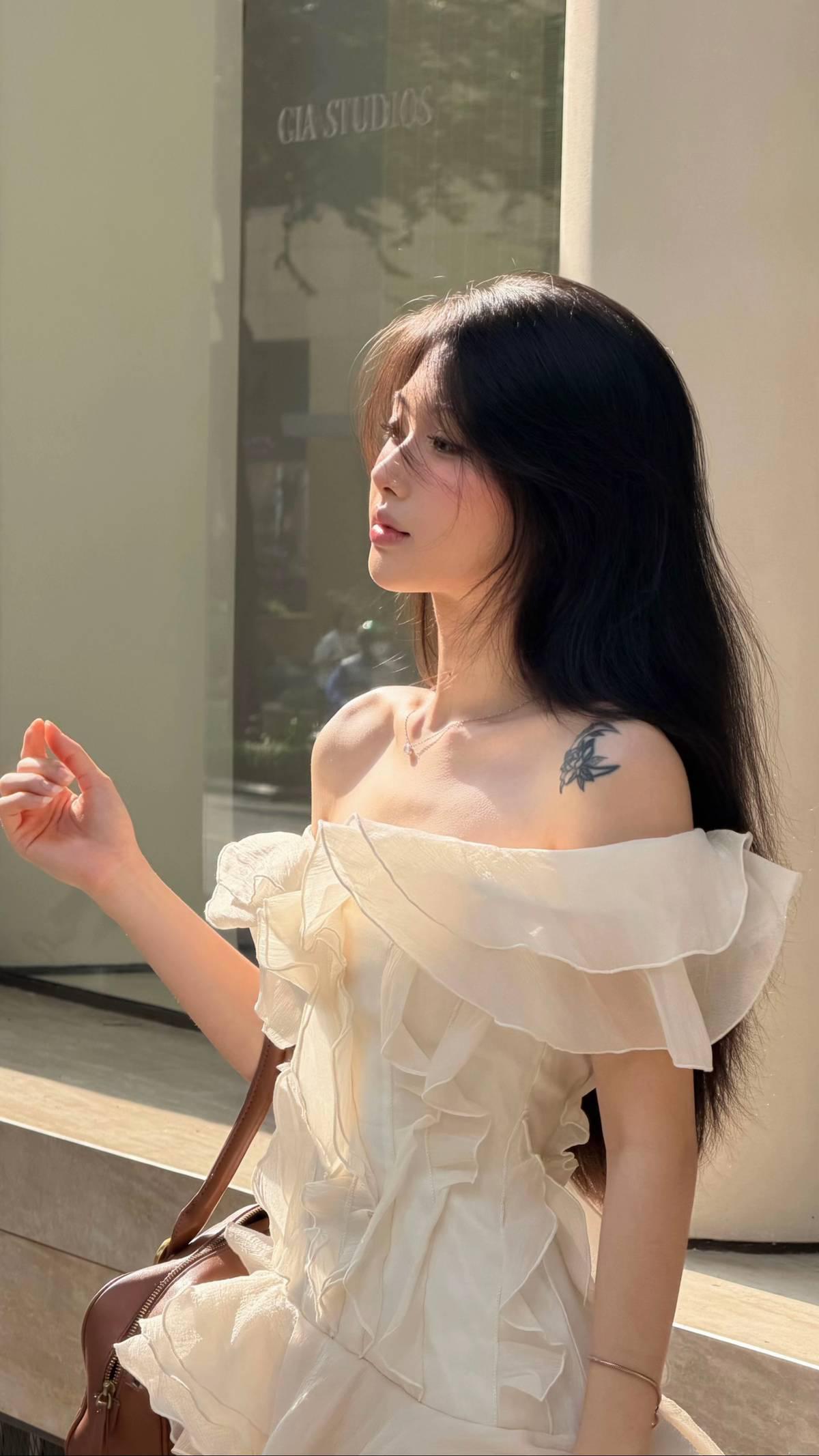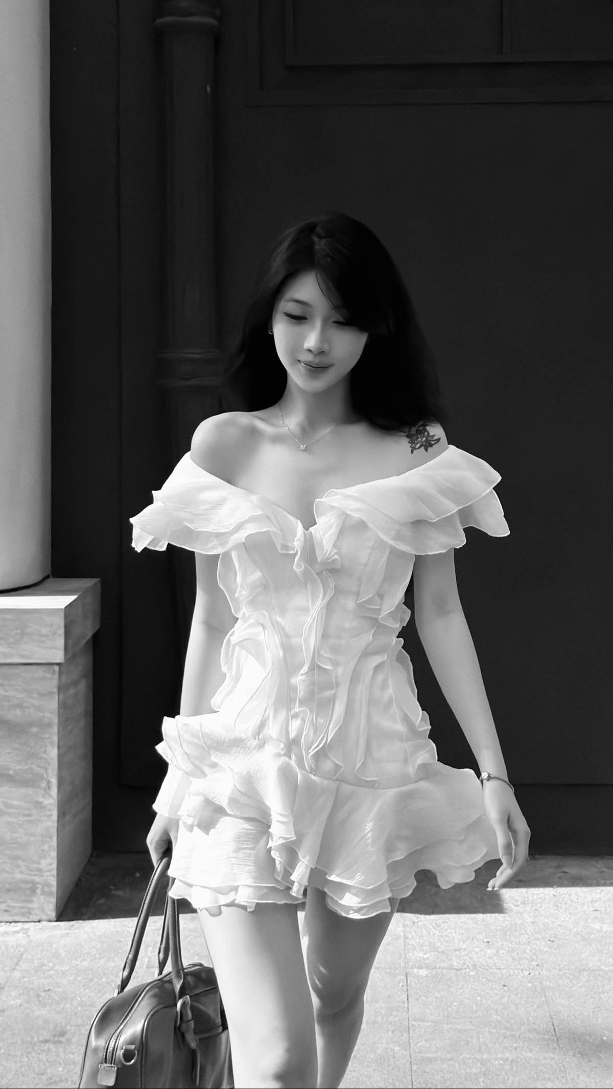 清新脱俗的美少女,简约白色背心,自然妆容,散发自然魅力。街拍美女