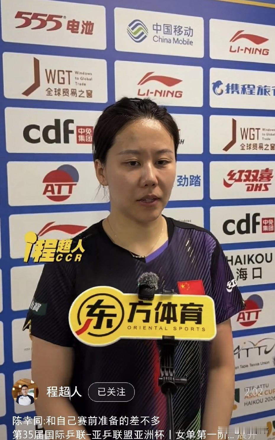 郑长弓教练也来海口亚洲杯了。 看来多哈支线赛结束后,志强和李大成教练回北京休息了,刘恒和郑长弓教练是直接来海口上班了。刚刚王艺迪的比赛,场外教练是郑长弓,大迪第一轮比赛赢得很轻松,三局比赛对手只拿了10分,很快就下班了,赛后大迪和郑教练一起离场了。 上午段国乒女队一共有4场比赛,孙颖莎、陈幸同、蒯曼、王艺迪都取得了小组赛第一轮比赛的胜利。今天上午孙颖莎的场外是马琳,蒯曼、陈幸同的场外是邱贻可,王艺迪的场外是郑长弓,新教练也都开始上班了,还是女队主力比较省心啊。 莎莎下班后,在采访中说自己现在训练中的状态还是很好的吧,在海口这几天睡得也很好,等有时间了去周边吃好吃的。蒯曼说自己大学也是在海口上,也来过吧,一说到吃的蒯曼也是合不拢嘴。其实国乒队员们对海口还是很熟悉的,以前冬训会来这里,这次是打比赛。 晚间女队还有两场的比赛,陈熠、王曼昱的比赛都在晚间,下午还有备战的时间,比赛加油哦!