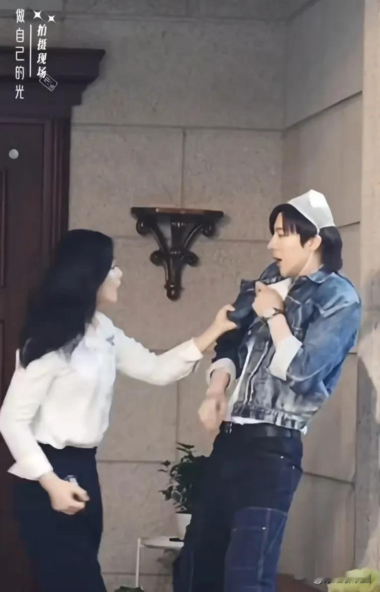 刘涛与刘宇宁主演的《做自己的光》拍摄现场,有一段刘宇宁被刘涛抓着不放 然后刘宇宁