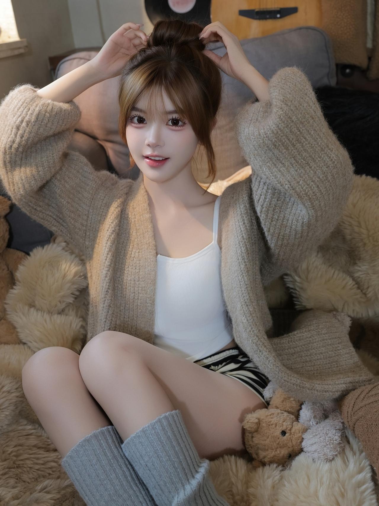 阳光洒进房间,女孩抱着玩偶微笑。少女感笑容 少女感微笑女孩 小姑娘微笑 温柔玩偶少女 小女孩微笑