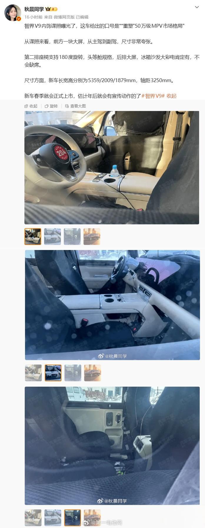 几位博主先后曝光智界V9 的最新消息,该车采用的最新三联屏设计,其中前方一块大屏从主驾延伸至副驾,方向盘则采用标准样式设计,更符合MPV的驾驶习惯