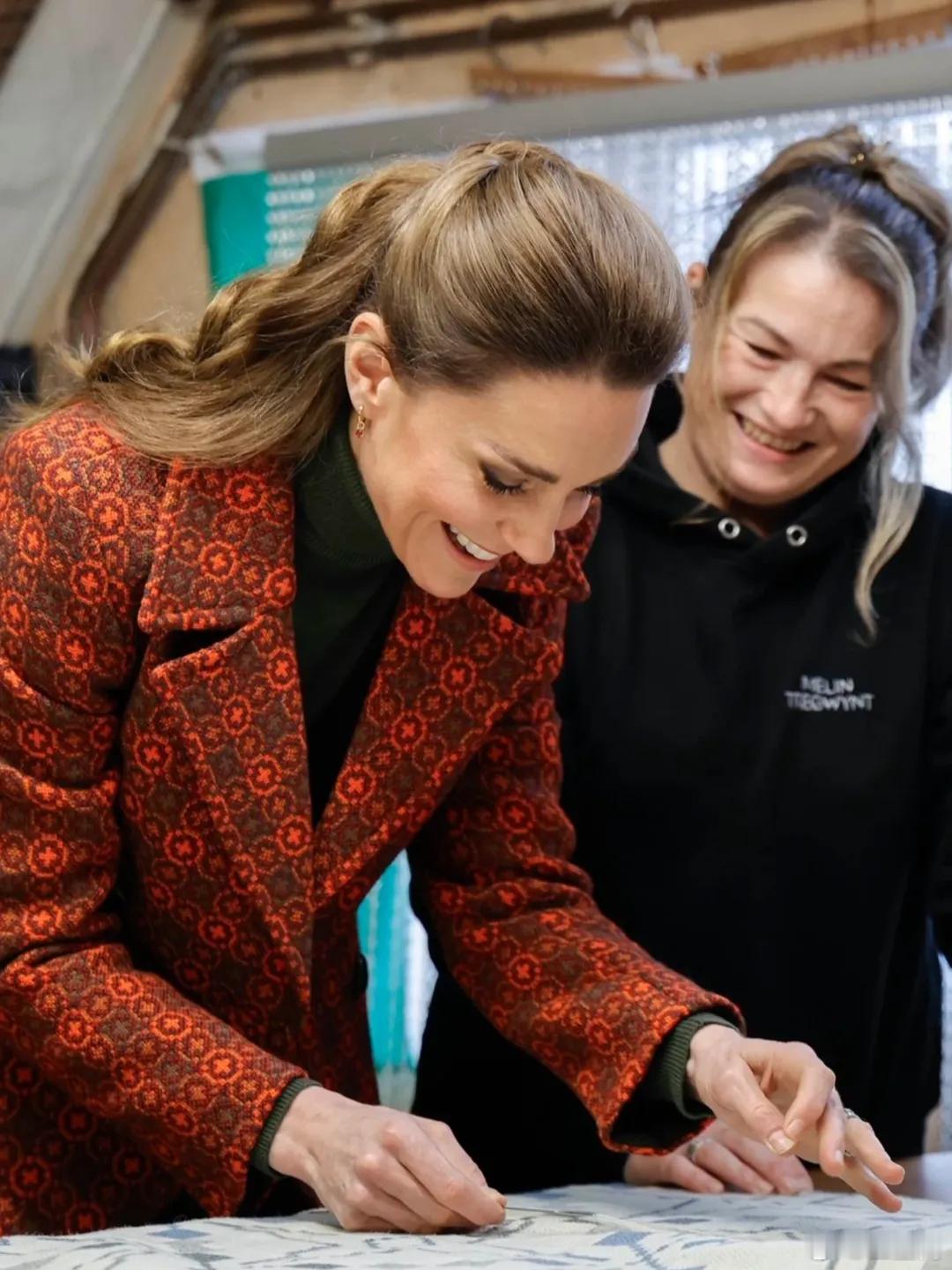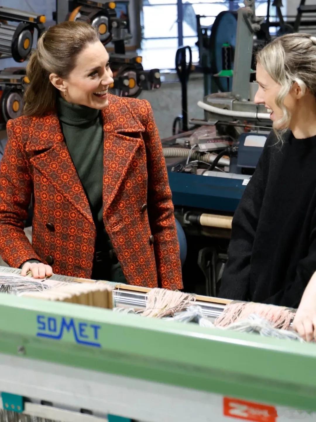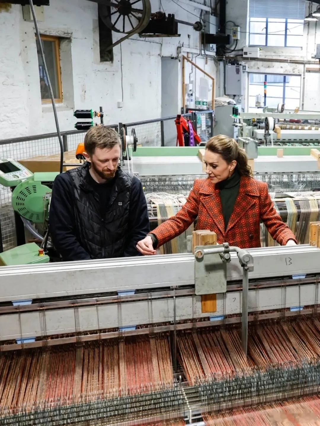 英国王室 🇬🇧2月3日,威尔士王妃凯瑟琳访问威尔士西南部的彭布罗克郡的羊毛厂梅林·克雷格温特,创建于1841年的老字号工厂。随后在卡迪根镇参观设计和制造牛仔裤的Hiut Denim公司。世界各国王室凯特王妃