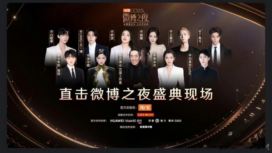 微博之夜另一版预约直播海报站位来了这版一排6人,由吴京沈腾、黄晓明姚晨在c!