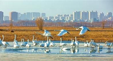甘肃张掖市不断加大黑河湿地生态环境保护力度,为大天鹅越冬营造了温馨家园,在这里越冬栖息的大天鹅数量逐年增多。